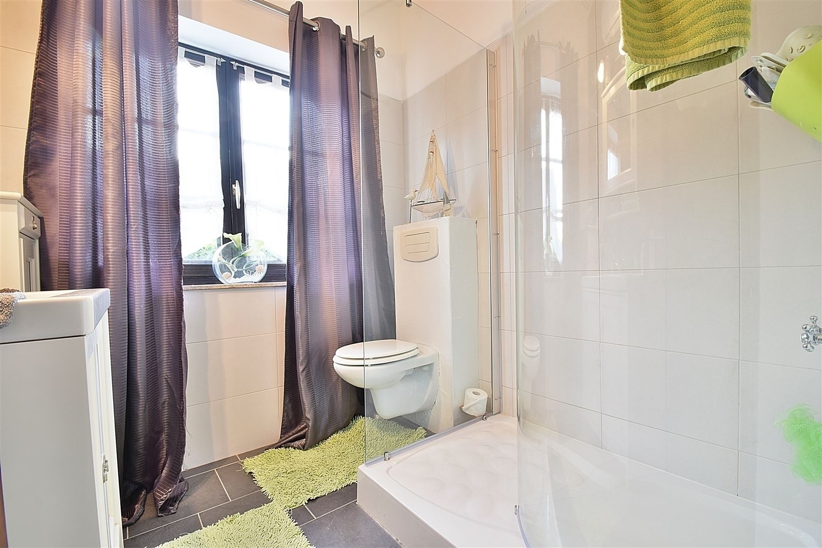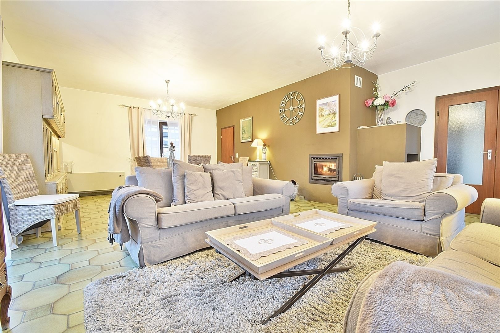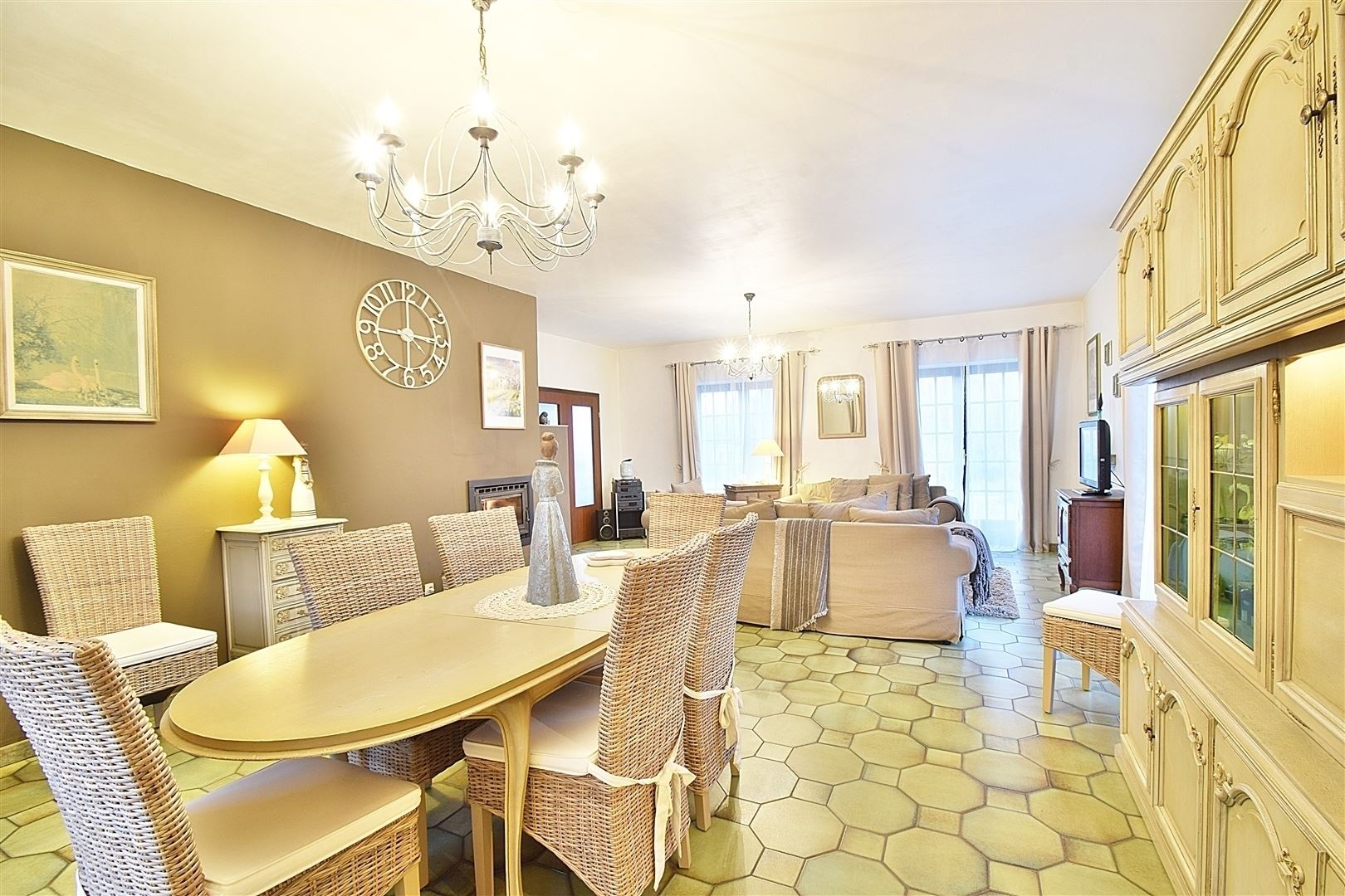 Rez-de-chaussée : Hall d'entrée avec toilette indépendante, un spacieux séjour de +/- 50 m² ouvert sur la salle à manger ave une K7 à bois, une cuisine entièrement équipée, 4 chambres dont une pouvant faire office de bureau et une salle de douche. Elle comprend également une grande terrasse et un beau jardin plat orientés SUD.