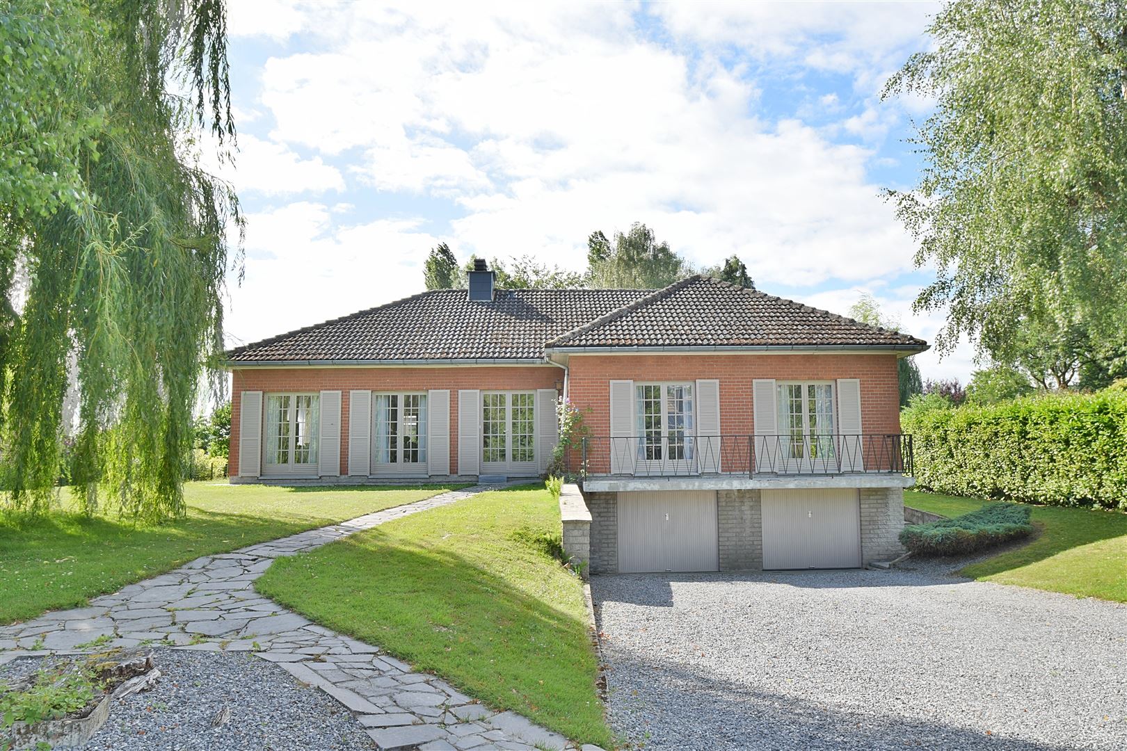 Dans une rue calme et sans issue, cette magnifique maison de Plain-pied RARE se compose comme suit : Sous-sol : Caves de rangement, vides ventilés espace buanderie, 2 garages et plusieurs emplacements de parkings. Rez-de-chaussée : Hall d'entrée avec toilette indépendante, un spacieux séjour de +/- 50 m² ouvert sur la salle à manger ave une K7 à bois, une cuisine entièrement équipée, 4 chambres dont une pouvant faire office de bureau et une salle de douche. Elle comprend également une grande terrasse et un beau jardin plat orientés SUD. 1er étage : Grenier de rangement avec trappe. Caractéristiques : Châssis double vitrage en bois, chauffage central au mazout (chaudière 2017) et cassette à bois, électricité bi-horaire non conforme, adoucisseur d'eau, citerne d'eau de pluie avec groupe hydrophore reliée, très bien isolée ! Faire offre à partir de 349.000,00 € sous réserve d'acceptation des propriétaires.
