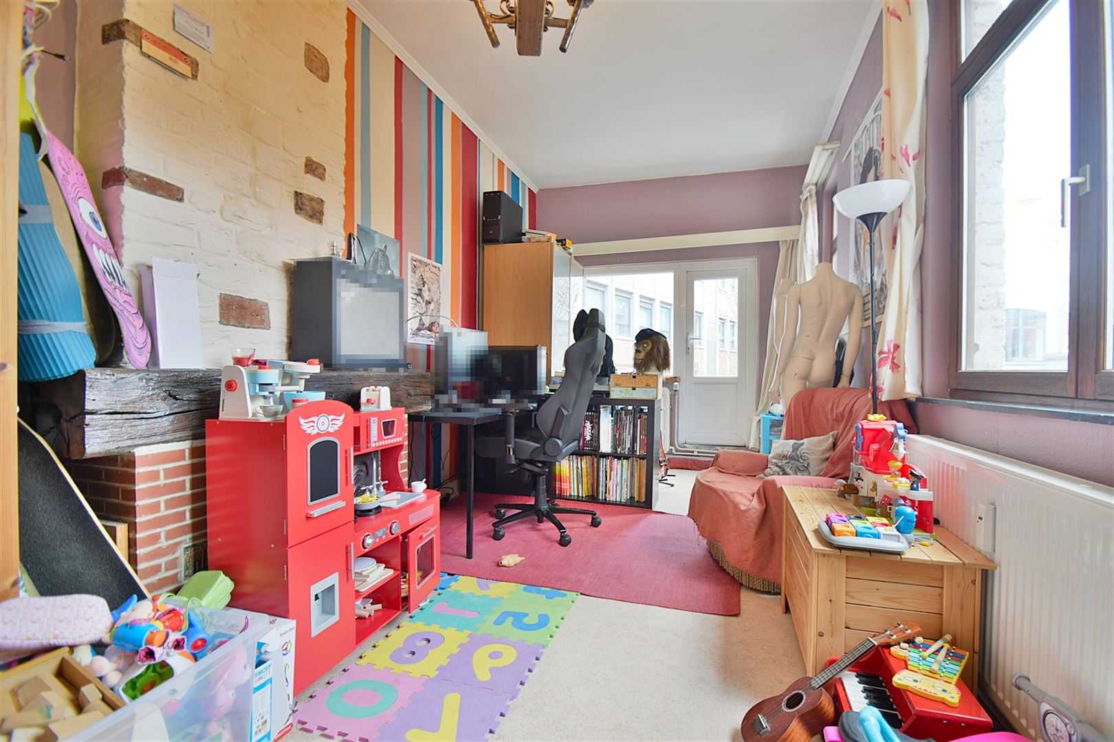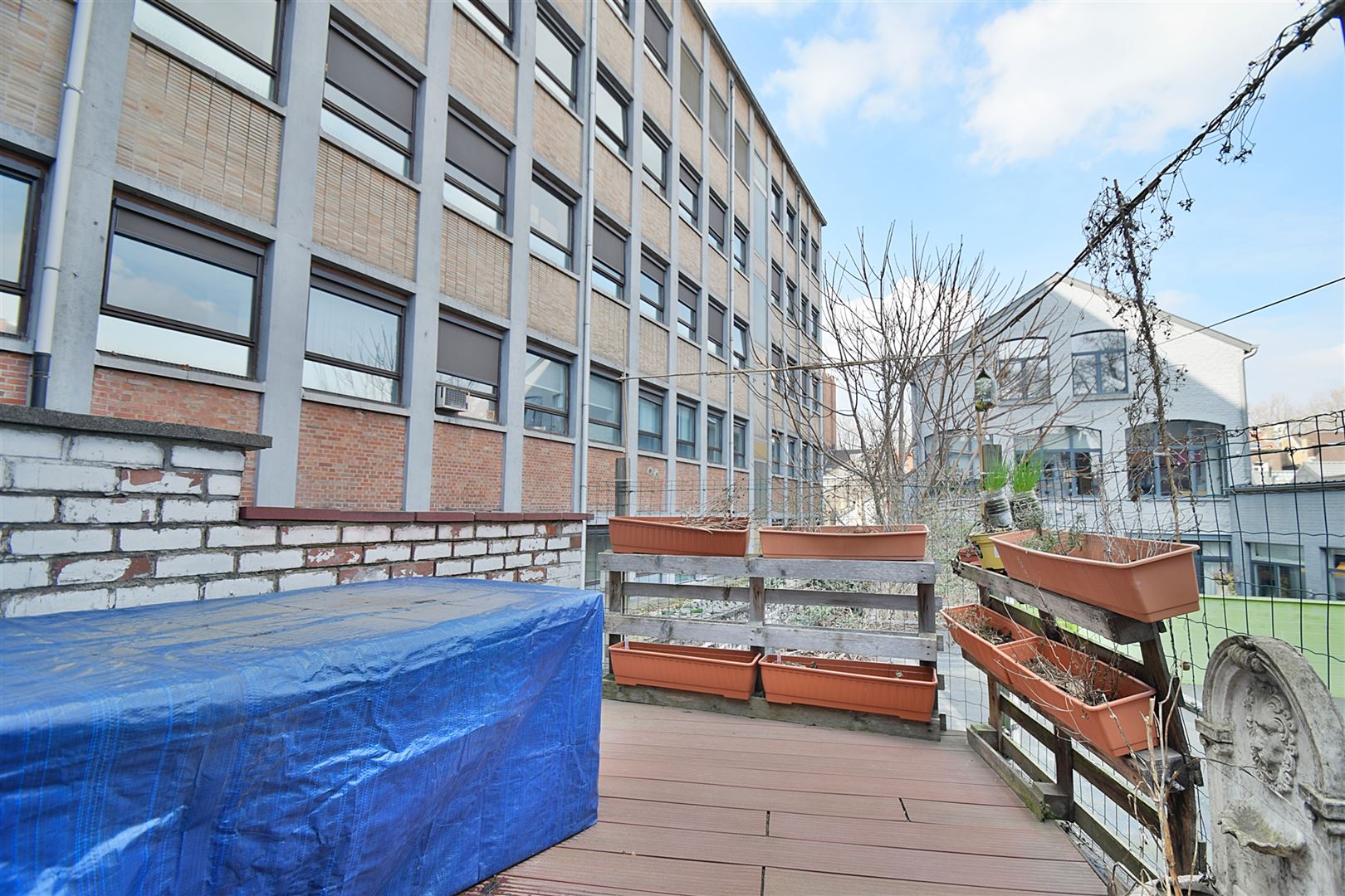 1er et 2e étage : Un appartement duplex de +/- 80 m² comprenant un beau séjour, salle à manger et cuisine, deux chambres, un dressing ou bureau, une salle de douche et une terrasse de 10 m².