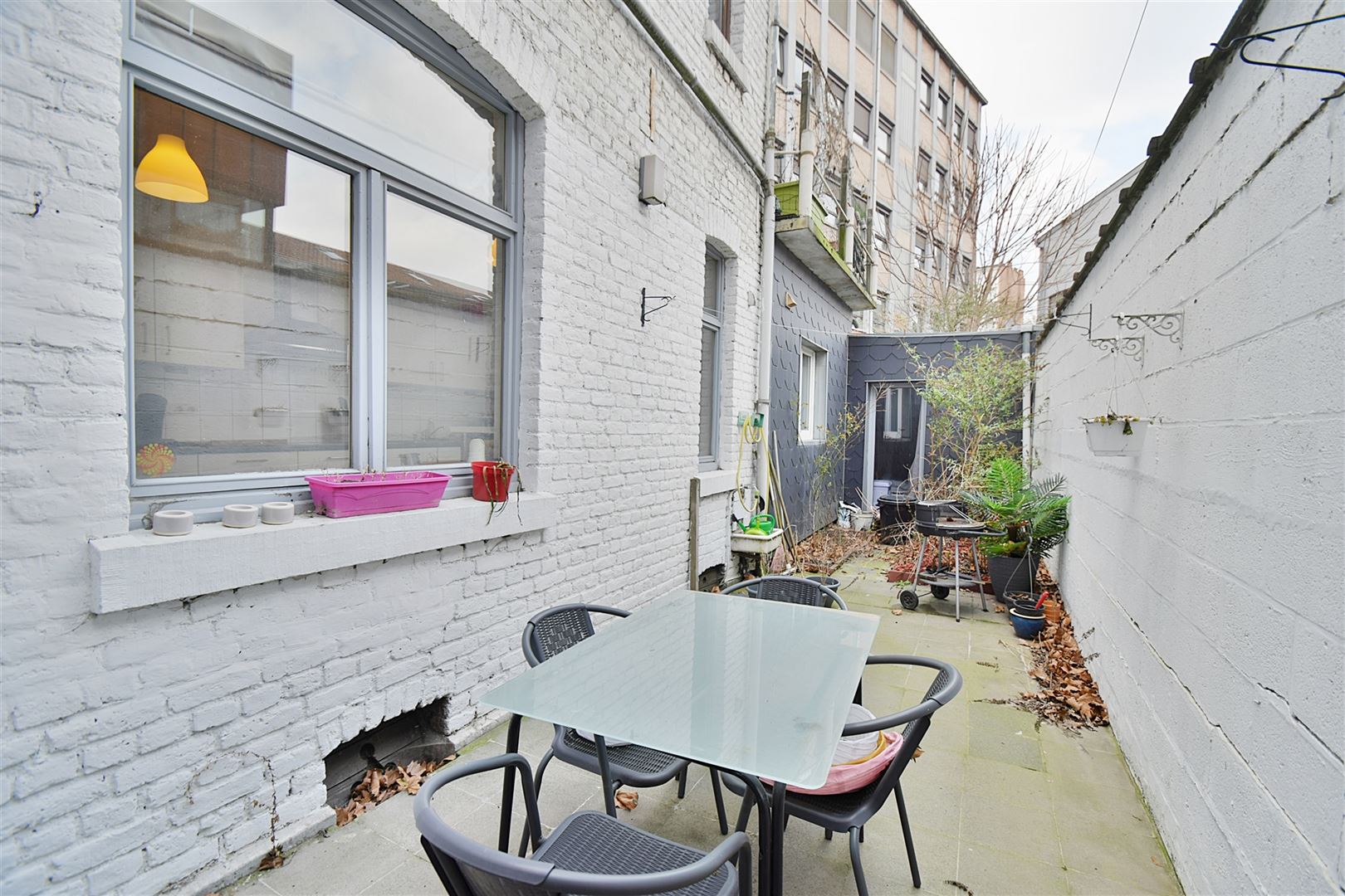 Idéalement situé, proche de toutes commodités, cet immeuble comprenant deux appartements se compose comme suit : Rez-de-chaussée : Hall d'entrée commun, un appartement de +/- 70 m² disposant d' un spacieux séjour, une cuisine équipée, une chambre, une salle de bains et des espaces de rangement. Il comprend également une terrasse de +/- 26 m².