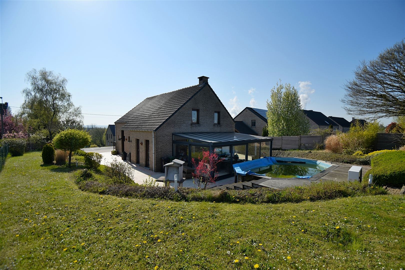 OPTION OPTION OPTION Charmante habitation idéalement située et proche de toutes commodités ( commerces, transports, écoles...) se compose comme suit: Au rez-de-chaussée; hall d'entrée, wc indépendant, cuisine équipée ( Four, taque, hotte, lave-vaisselle, micro-ondes, évier double bac, frigo), buanderie ,lumineux séjour de 35 m² avec accès vers une agréable véranda! A l'étage, 3 spacieuses chambres ( +/- 14m², 11m² et 13 m²) et une agréable salle-de-bain ( baignoire, douche, deux lavabos). L'habitation bénéficie également d'un spacieux garage. A l'extérieur, beau jardin idéalement orienté, piscine chauffée ( pompe à chaleur), étang et abris de jardin. Caractéristiques techniques: Chauffage électrique par accumulation, compteur bi-horaire, châssis en bois double vitrage, k7 à bois, raccordement aux égouts. A visiter sans tarder! Prix: Faire offre à partir de 299.000€ ( offre soumise à l'acceptation des propriétaires). www.immo-bertrand.be.