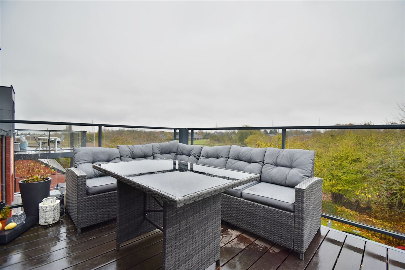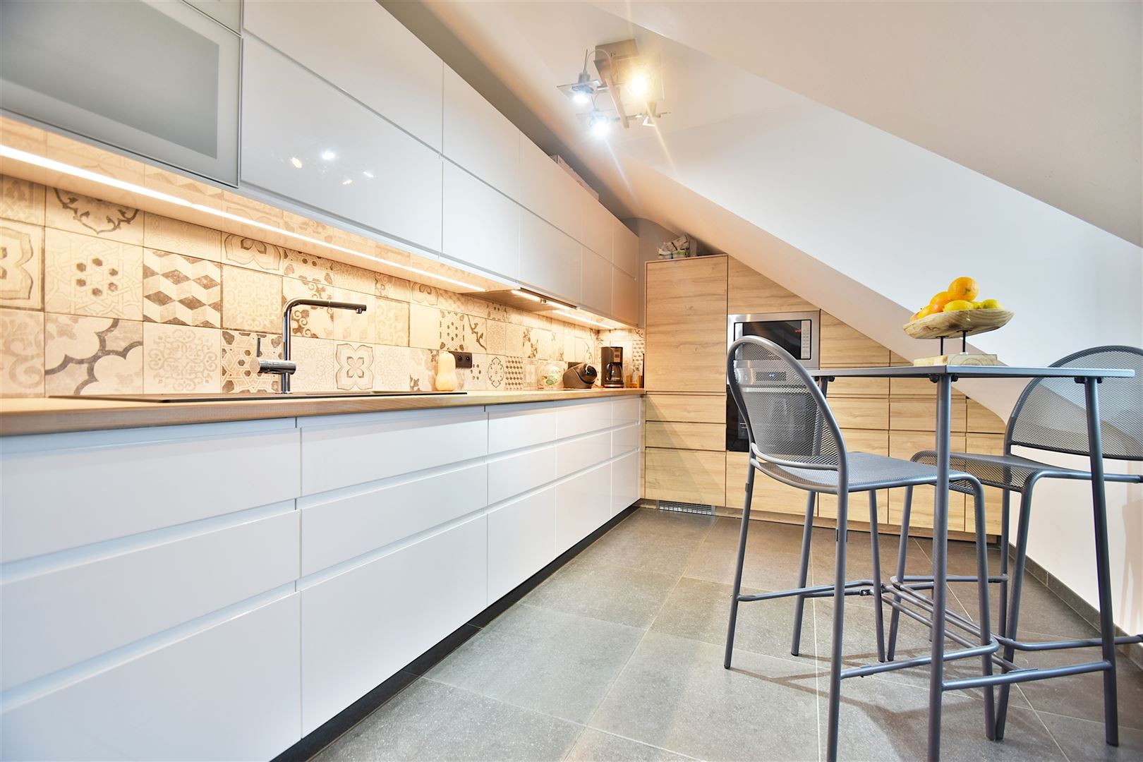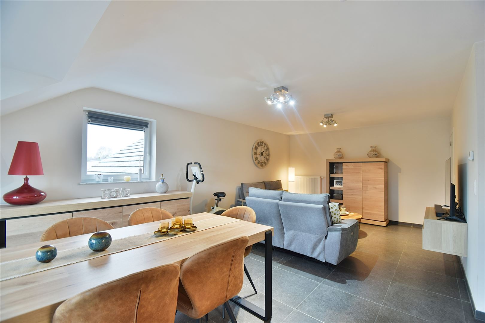 Au 2ème étage: Un hall d'entrée, un lumineux séjour de +/- 32m² avec accès à la terrasse de 10m² orienté SUD-EST, une cuisine super équipée, un hall de nuit, deux spacieuses chambres (+/- 13m² et 17m²), une salle de bain, un WC indépendant, une buanderie.