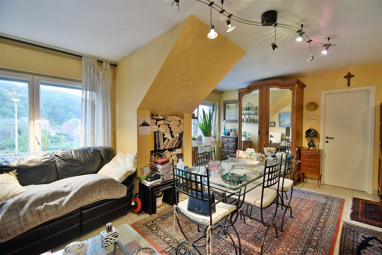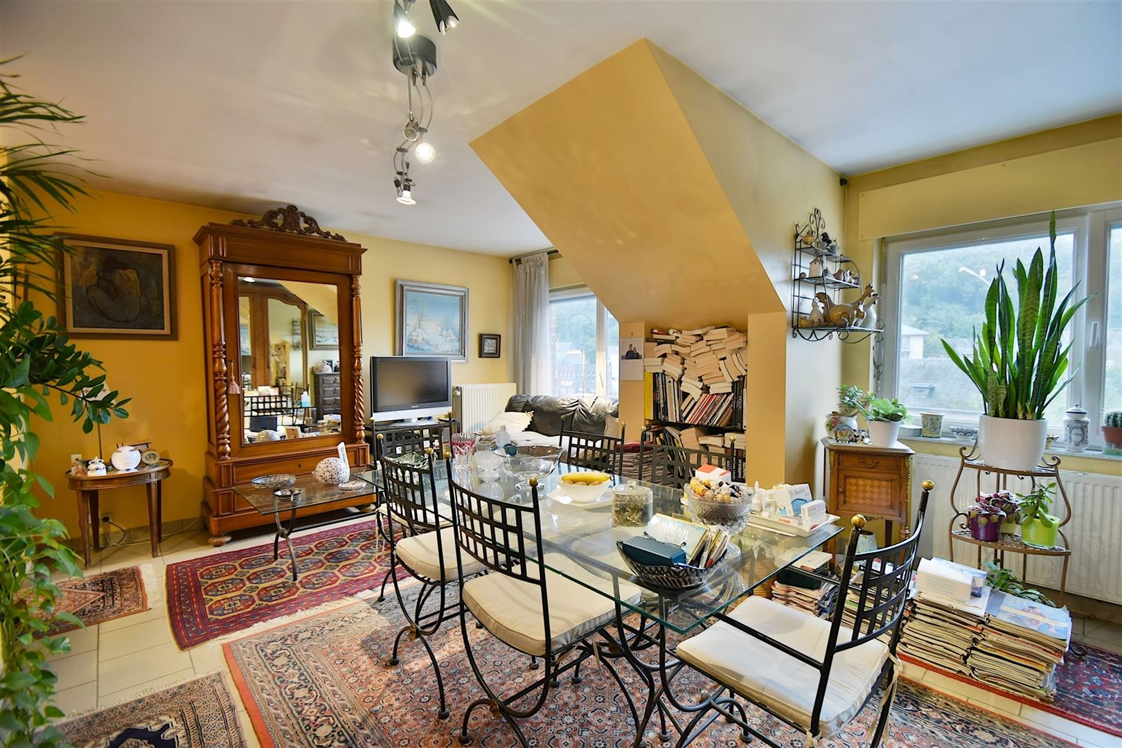 Au 2ème étage: Un hall d'entrée déservant un beau séjour de +/- 23 m², une cuisine équipée, une lumineuse chambre et une salle de douche.
