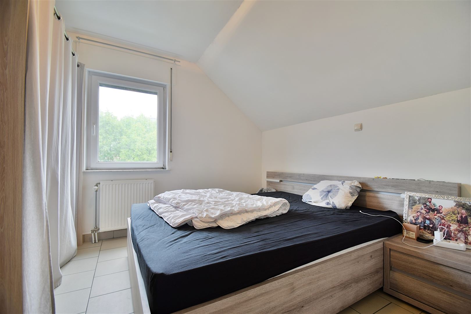 2ème étage: Un lumineux salon ouvert sur la salle-à-manger, une cuisine équipée, une chambre de +/- 12 m² et une salle-de-douche.