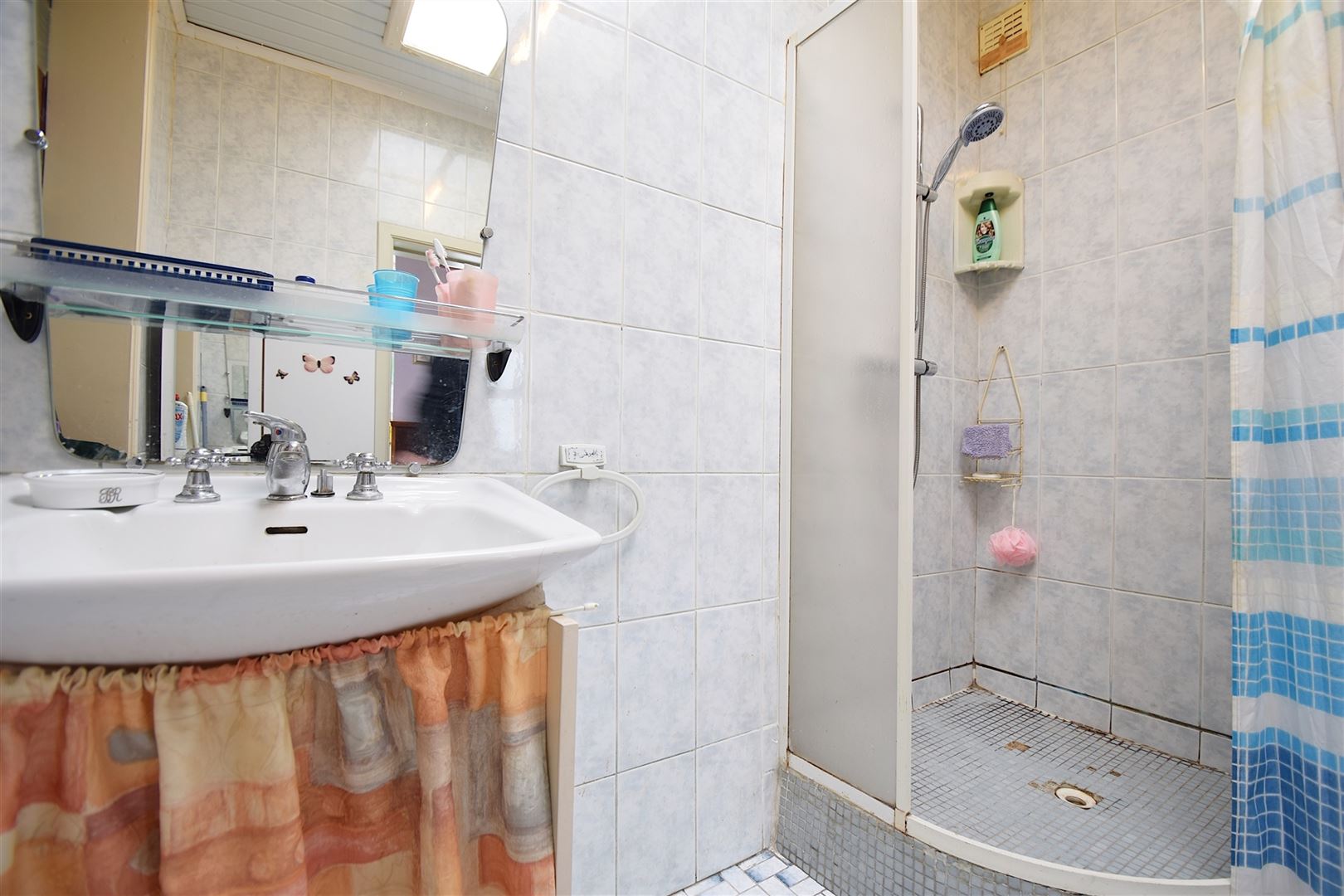 Au rez-de-chaussée: un hall d'entrée, un lumineux séjour de +/- 24m², une cuisine équipée, une belle chambre d'environ 13m², une salle de douche et une toilette indépendante.