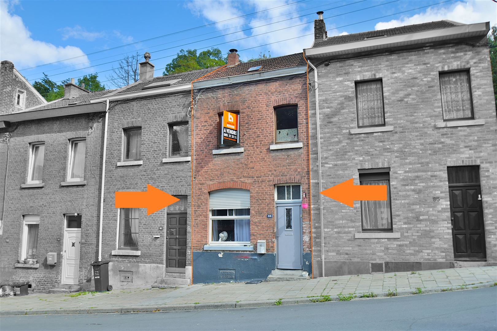 Maison de ville 2 façades proche de toutes les commodités composée de: salon, salle à manger, cuisine, salle de bain avec accès à une petite cours, deux chambres, grenier et caves. Châssis simple vitrage en bois, chauffage central au gaz de ville, électricité bi-horaire non réceptionnée. Faire offre à partir de 99.000,00 euros sous réserve de l'acceptation des propriétaires. www.immo-bertrand.be