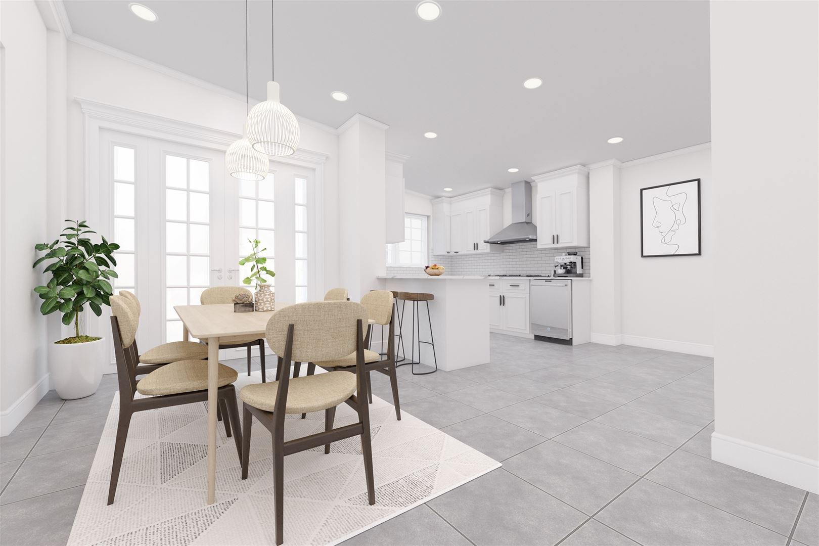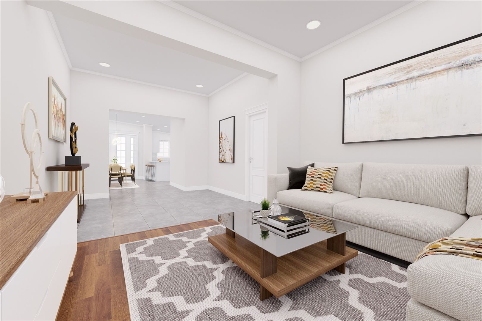 Au rez-de-chaussée: un hall d'entrée, un lumineux salon d'environ 29m², une salle-à-manger ouverte sur la cuisine offrant un accès direct au jardin et ouvert sur l'espace cuisine, un vaste garage.