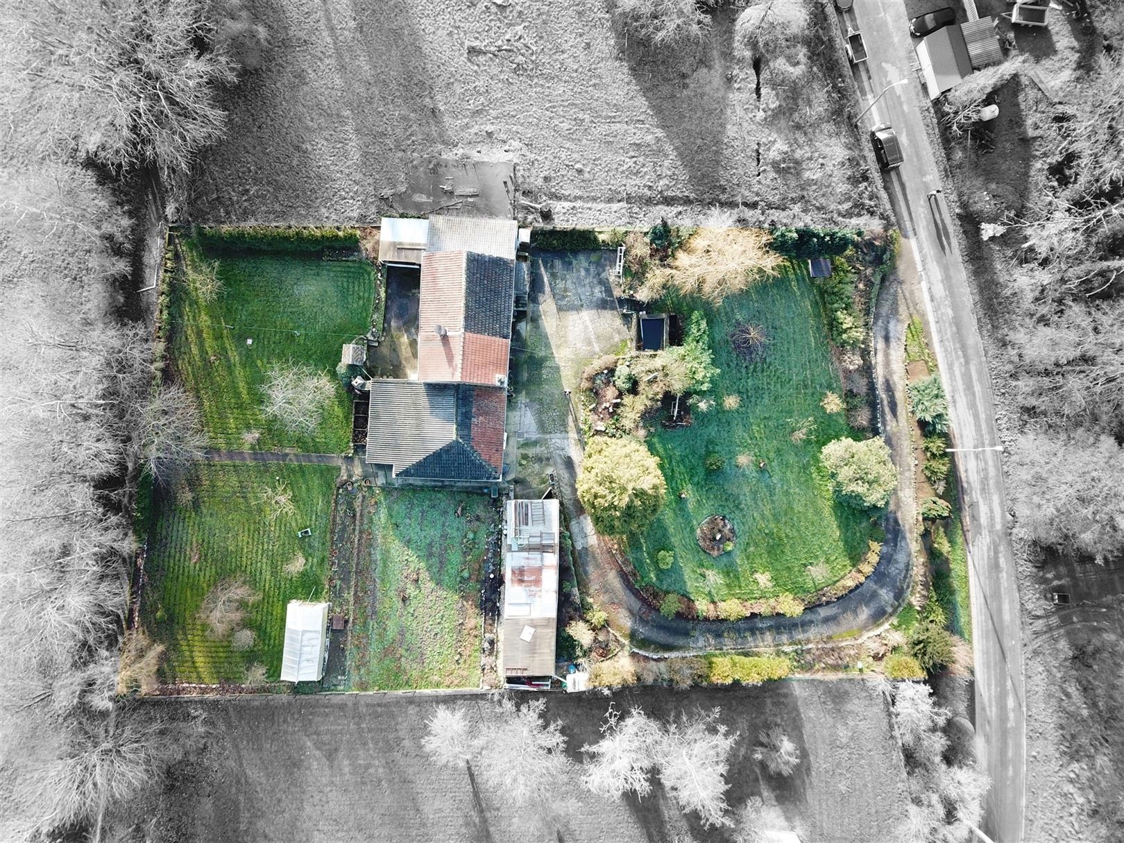 A l'extérieur: un allée menant à la maison, un vaste jardin orienté SUD-EST, un bel atelier/entrepôt, un garage une voiture et une serre.