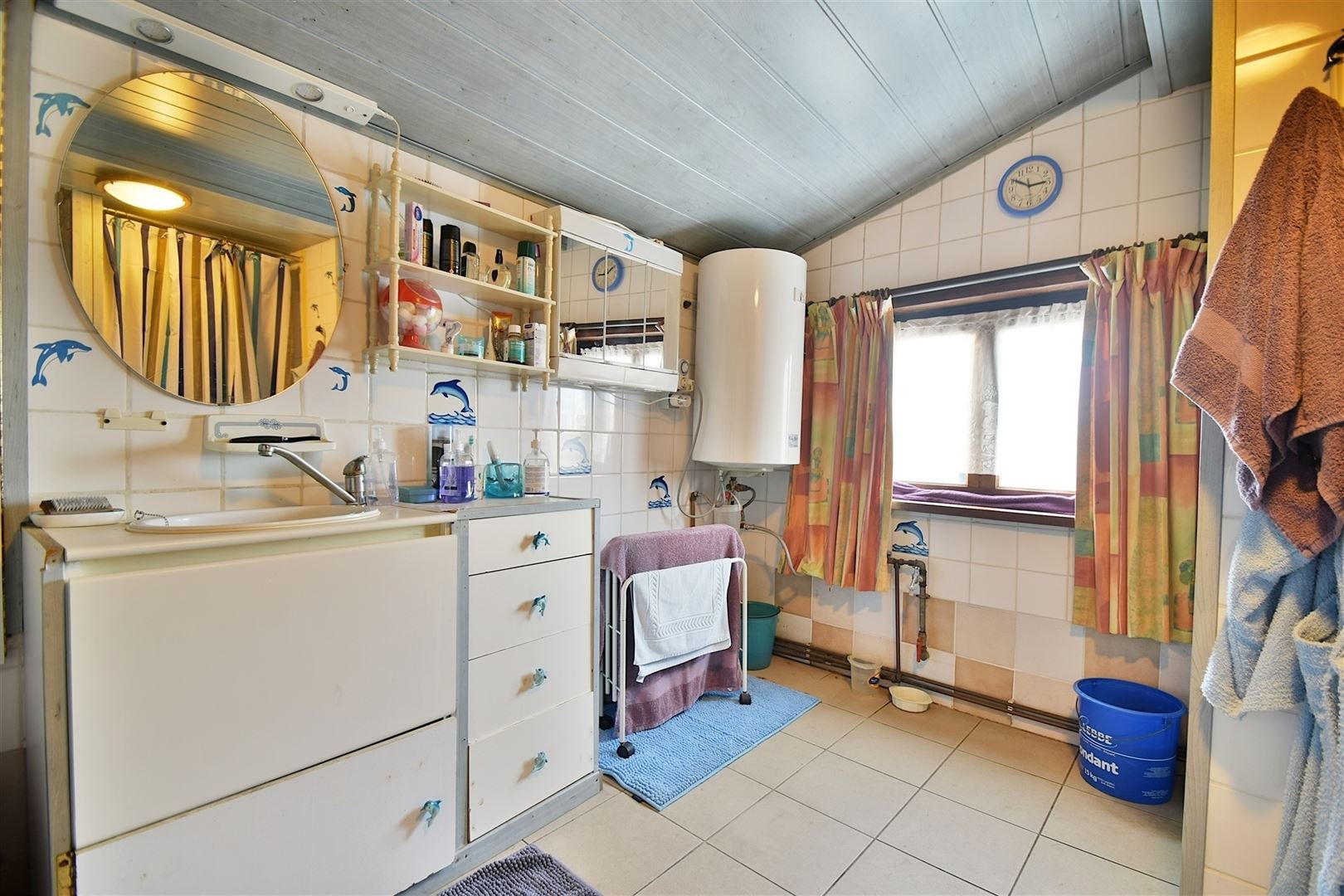 Au rez-de-chaussée: un hall d'entrée, un lumineux salon de 20m²offrant un accès au jardin, une cuisine, un salle-à-manger et une salle-de-douche.
