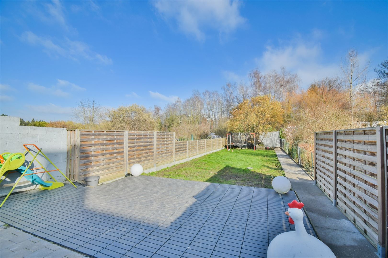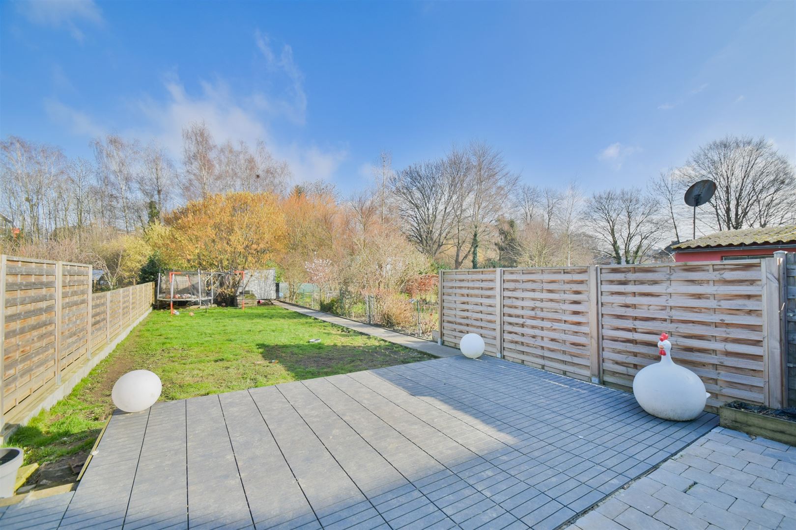 A l'extérieur: une vaste terrasse, un beau jardin plat avec allée latérale.