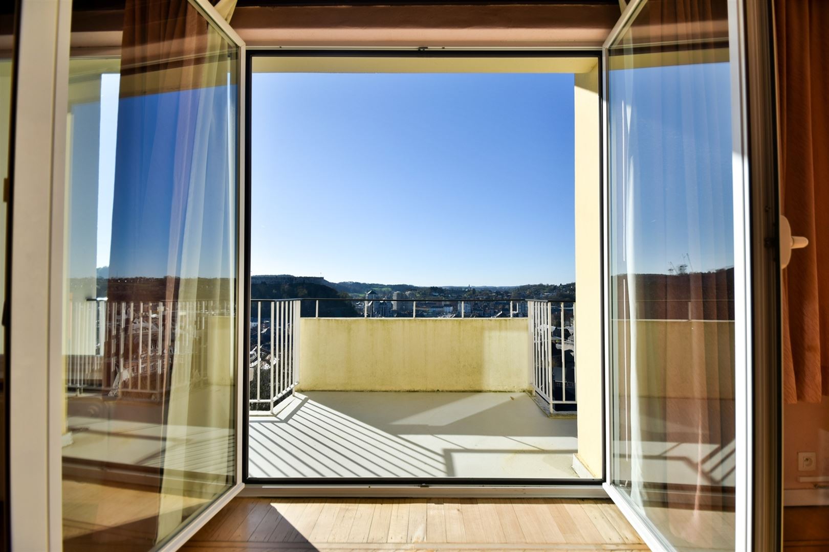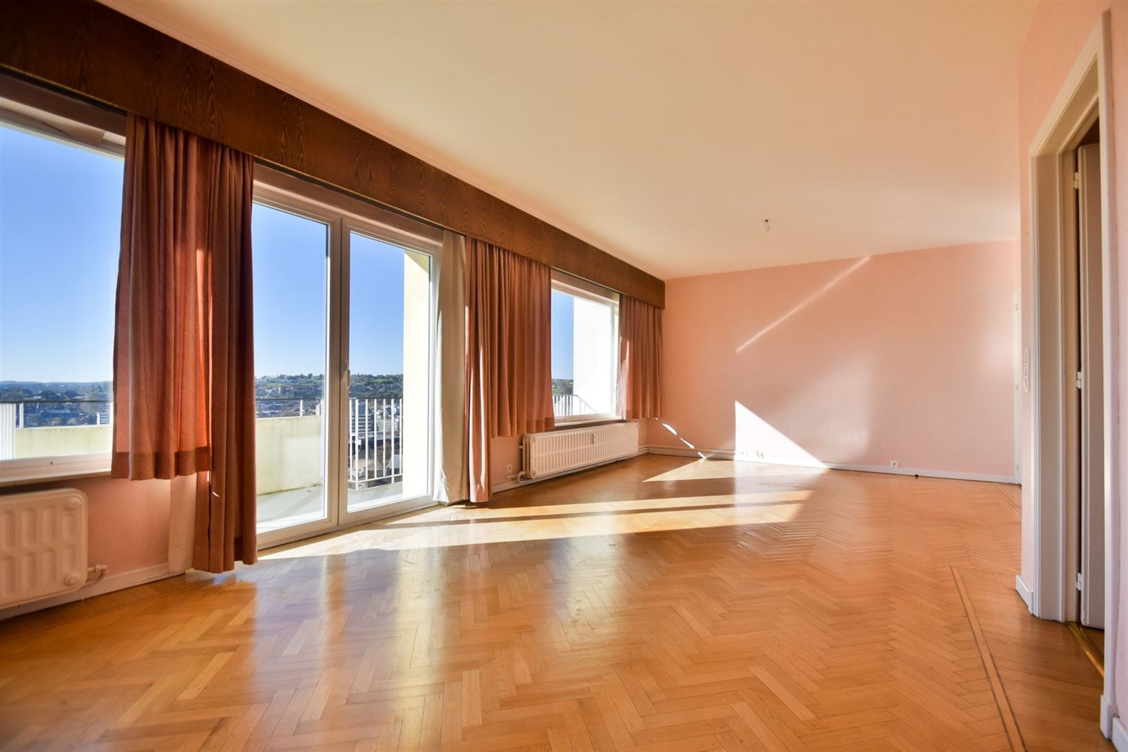 Au 7ème étage: un vaste hall d'entrée, un lumineux séjour d'environ 31m² offrant un beau panorama sur la ville et un accès à la terrasse de 10m², une cuisine, un hall-de-nuit, une agréable chambre de 13m², une salle-de-bain et une toilette indépendante.
