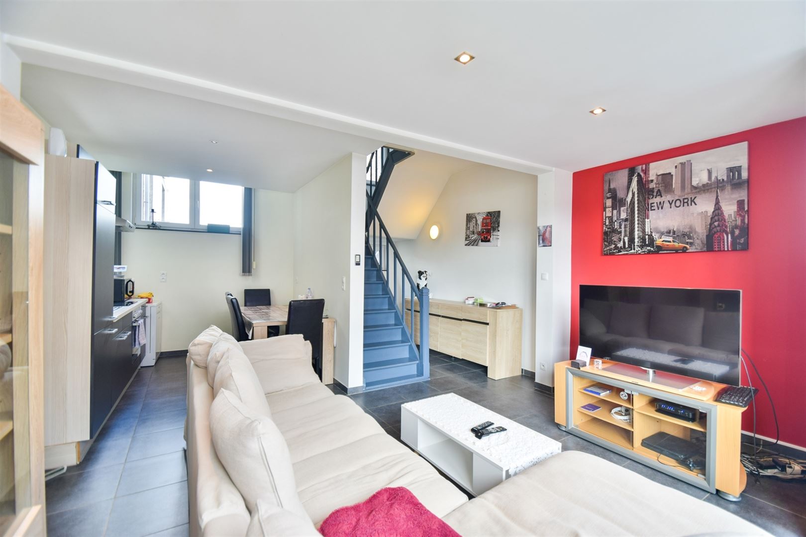 OPTION OPTION OPTION !!! Proche du centre d'Amay, de la gare et des axes routiers, cette maison entièrement rénovée se compose comme suit : Au rez-de-chaussée, hall d'entrée, garage de 18 m² et espace buanderie. Au 1er étage, lumineux séjour ouvert sur la cuisine équipée pour un total de 25 m². Au 2e étage, hall de nuit, salle-de-douche, agréable chambre avec espace dressing ou bureau et balcon. Une cave de 20 m² se trouve au sous-sol. Caractéristiques techniques : Châssis PVC double vitrage, chauffage par électricité direct et convecteur gaz, électricité bi-horaire conforme. Possibilité de bénéficier des droits d'enregistrement réduits. Faire offre à partir de 159.000 €. (Publicité non-contractuelle) www.immo-bertrand.be