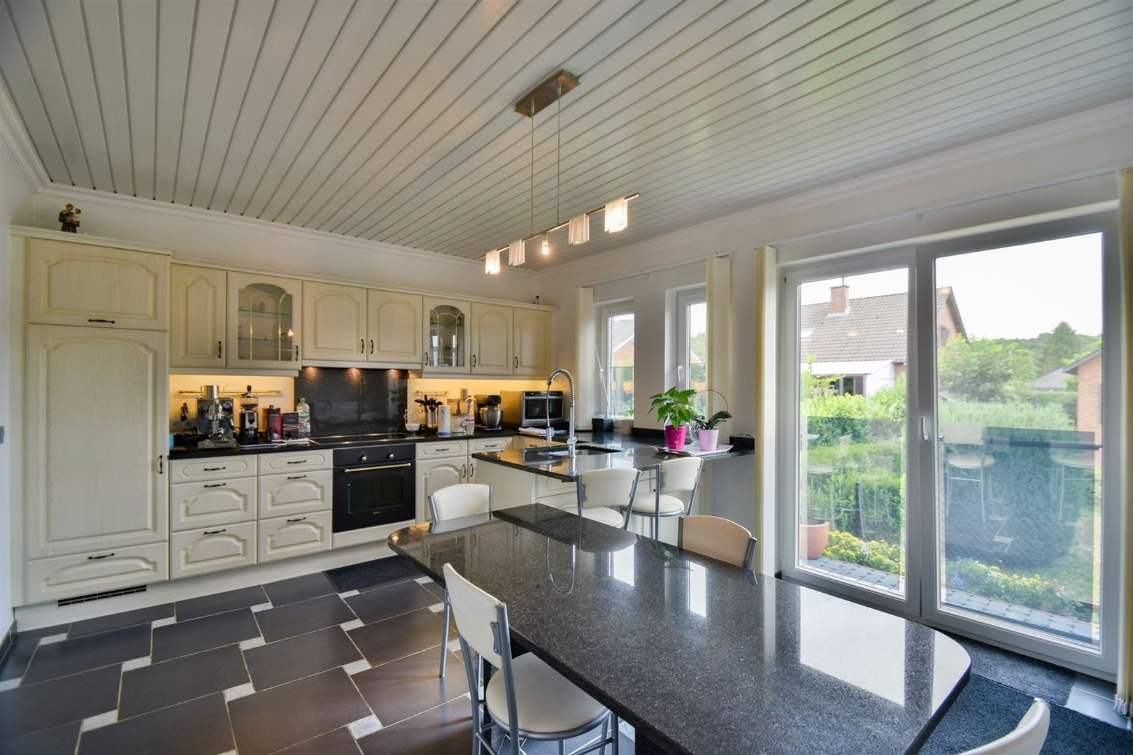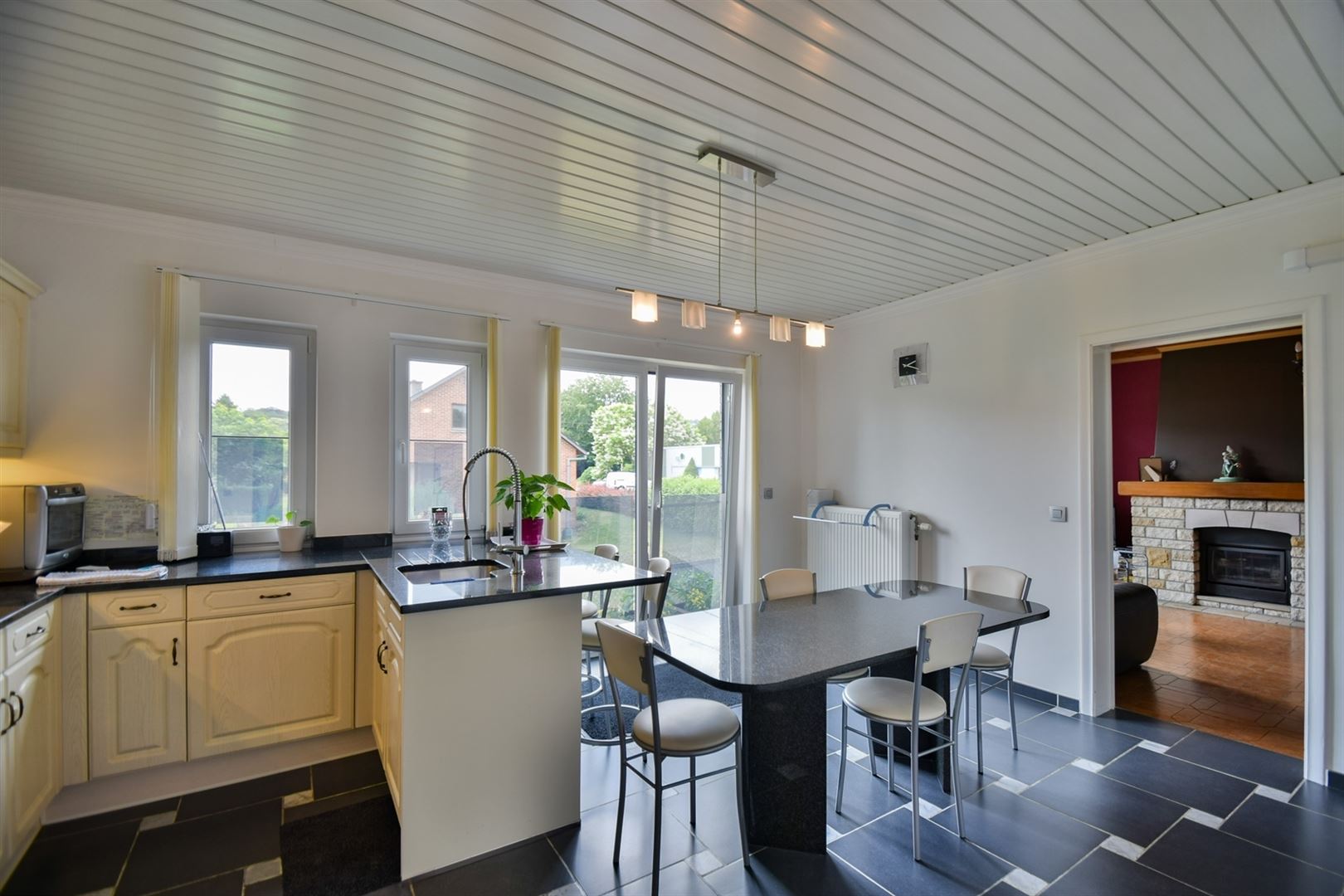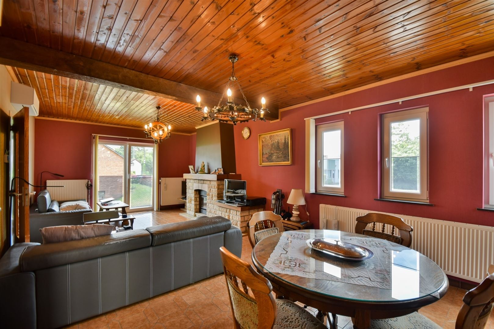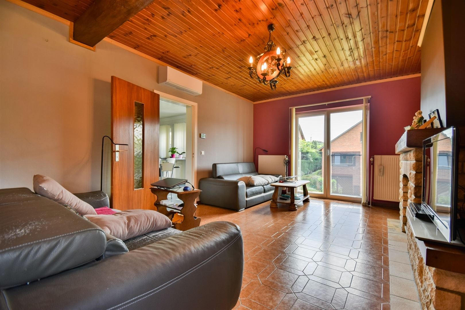 Au 1er étage: un hall d'entrée, un beau séjour d'environ 33m² avec poêle à bois, une lumineuse cuisine entièrement équipée et offrant un accès aux extérieurs, deux agréables chambres (+/- 16m² et 12m²) et une salle-de-douche.