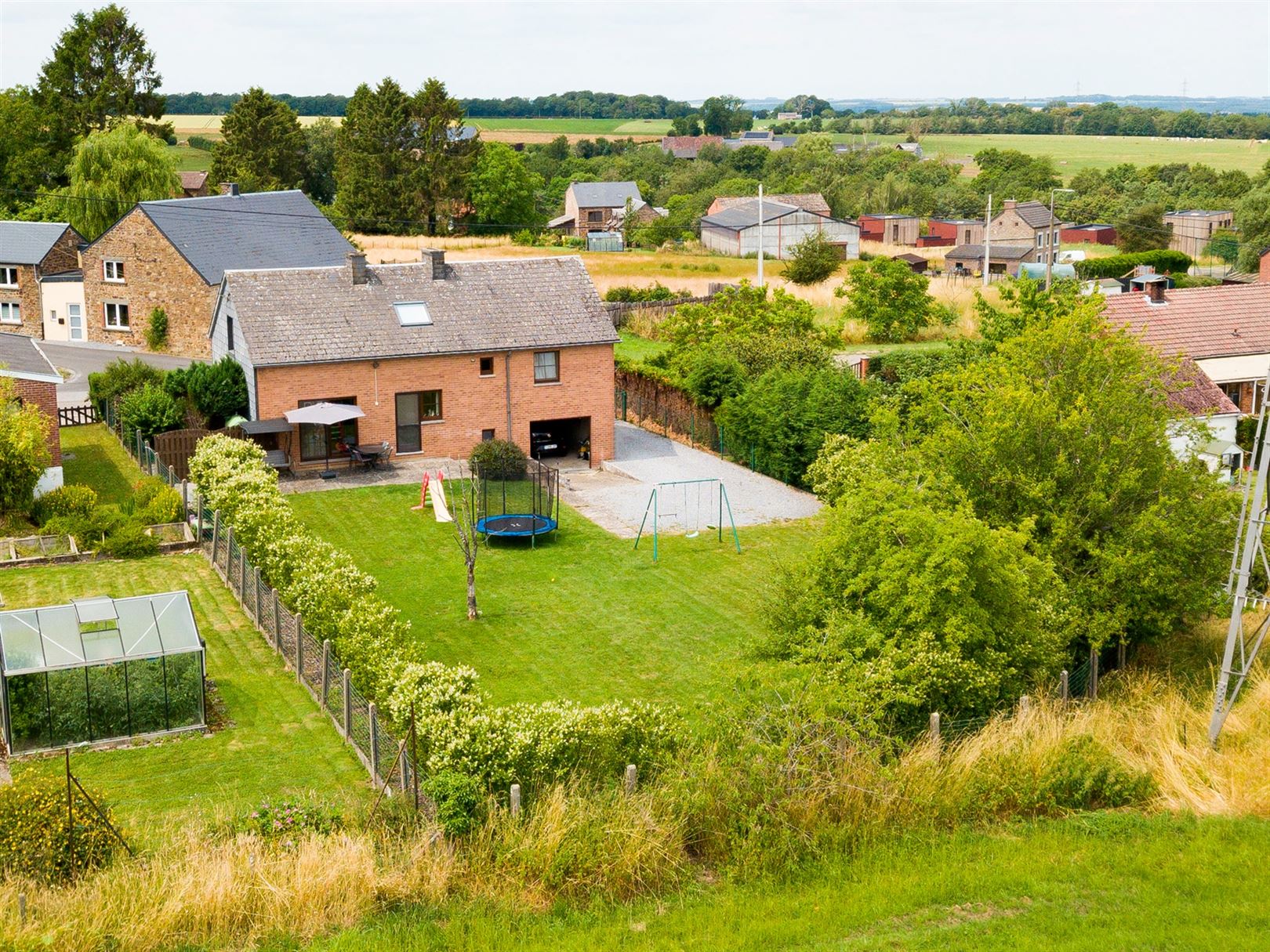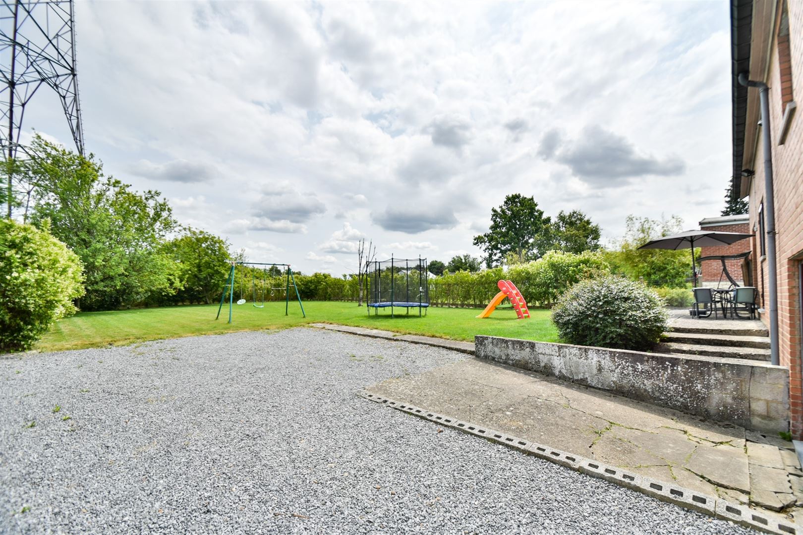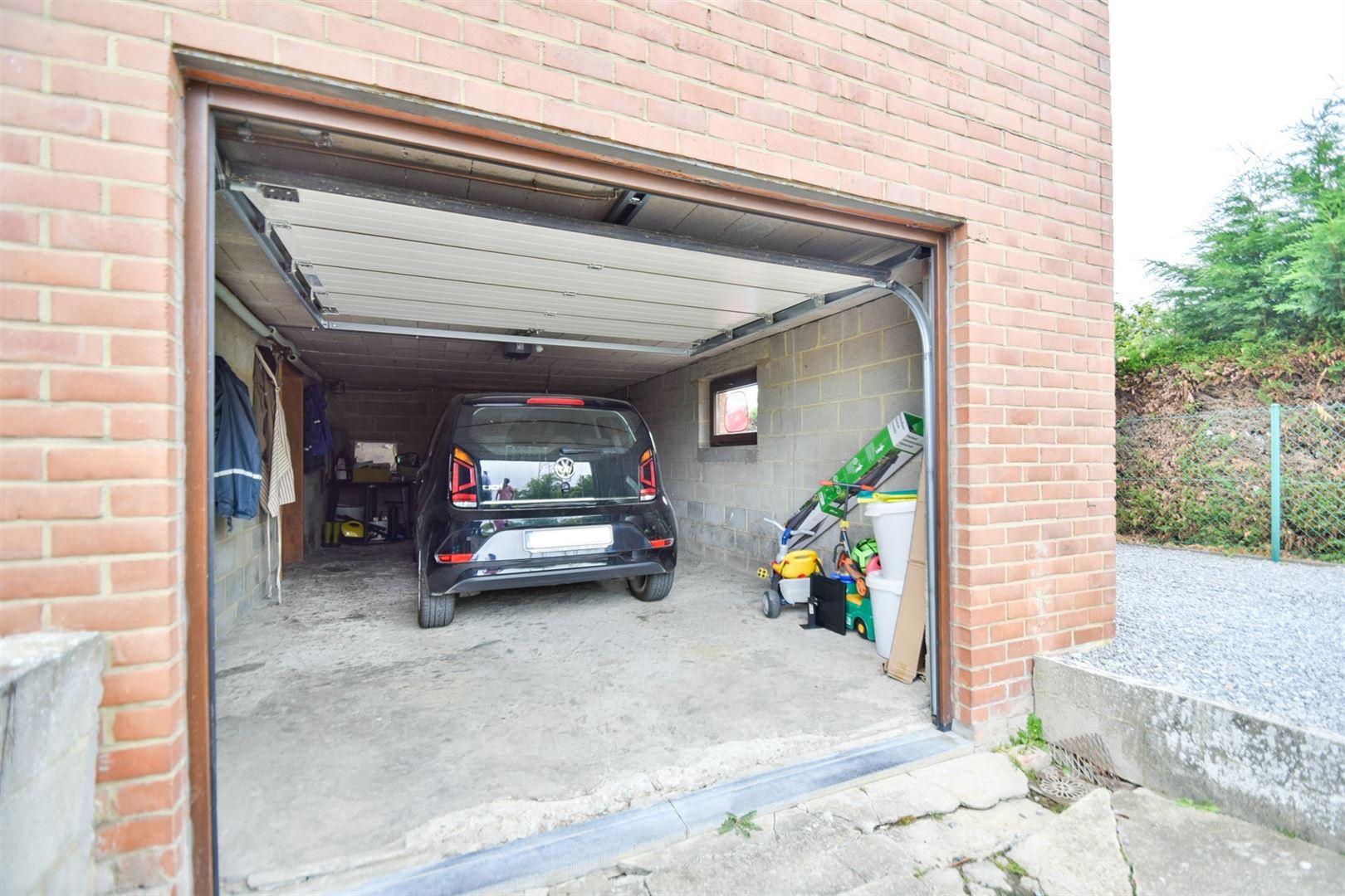 A l'extérieur: une allée menant au garage, de nombreux emplacements de parking, un joli jardin plat et clôturé et une terrasse d'environ 20m² orientée EST.
