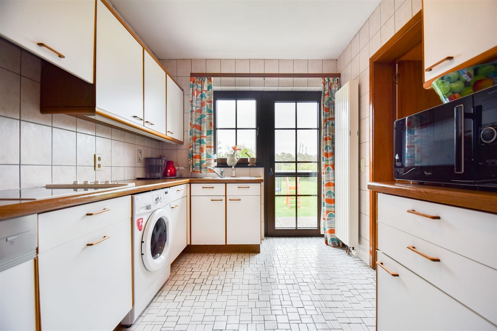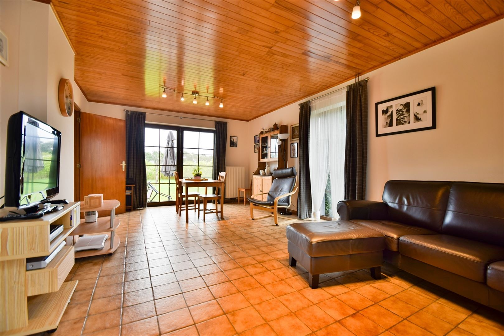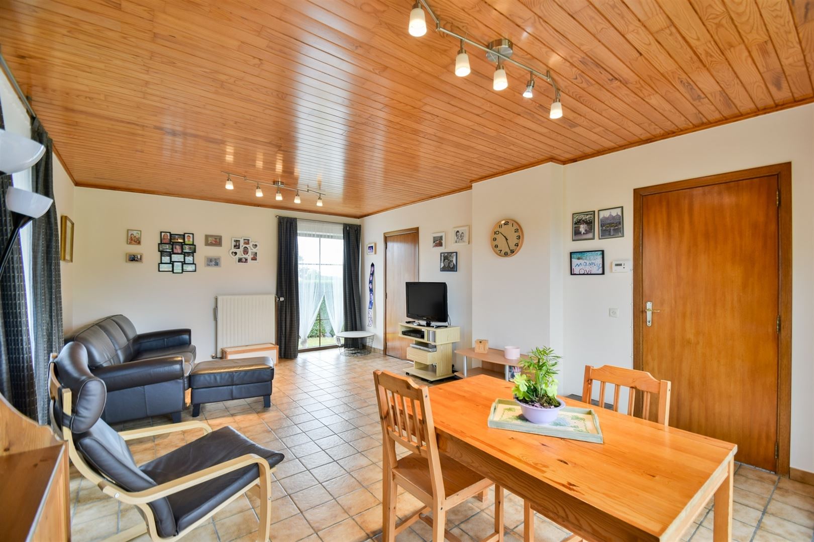 A l'extérieur: une allée menant au garage, de nombreux emplacements de parking, un joli jardin plat et clôturé et une terrasse d'environ 20m² orientée EST.