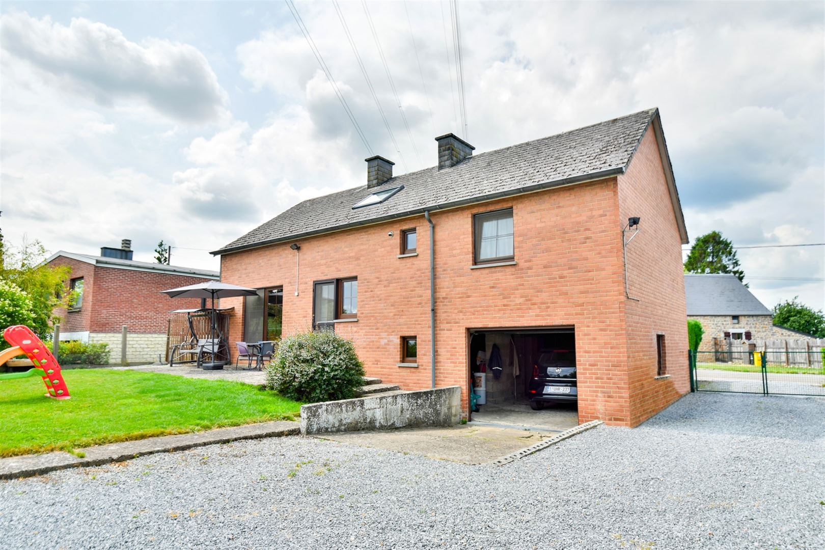 Caractéristiques techniques: châssis PVC double vitrage, chauffage central au mazout, électricité non-conforme, porte de garage sectionnelle électrique, raccordement à l'égout.