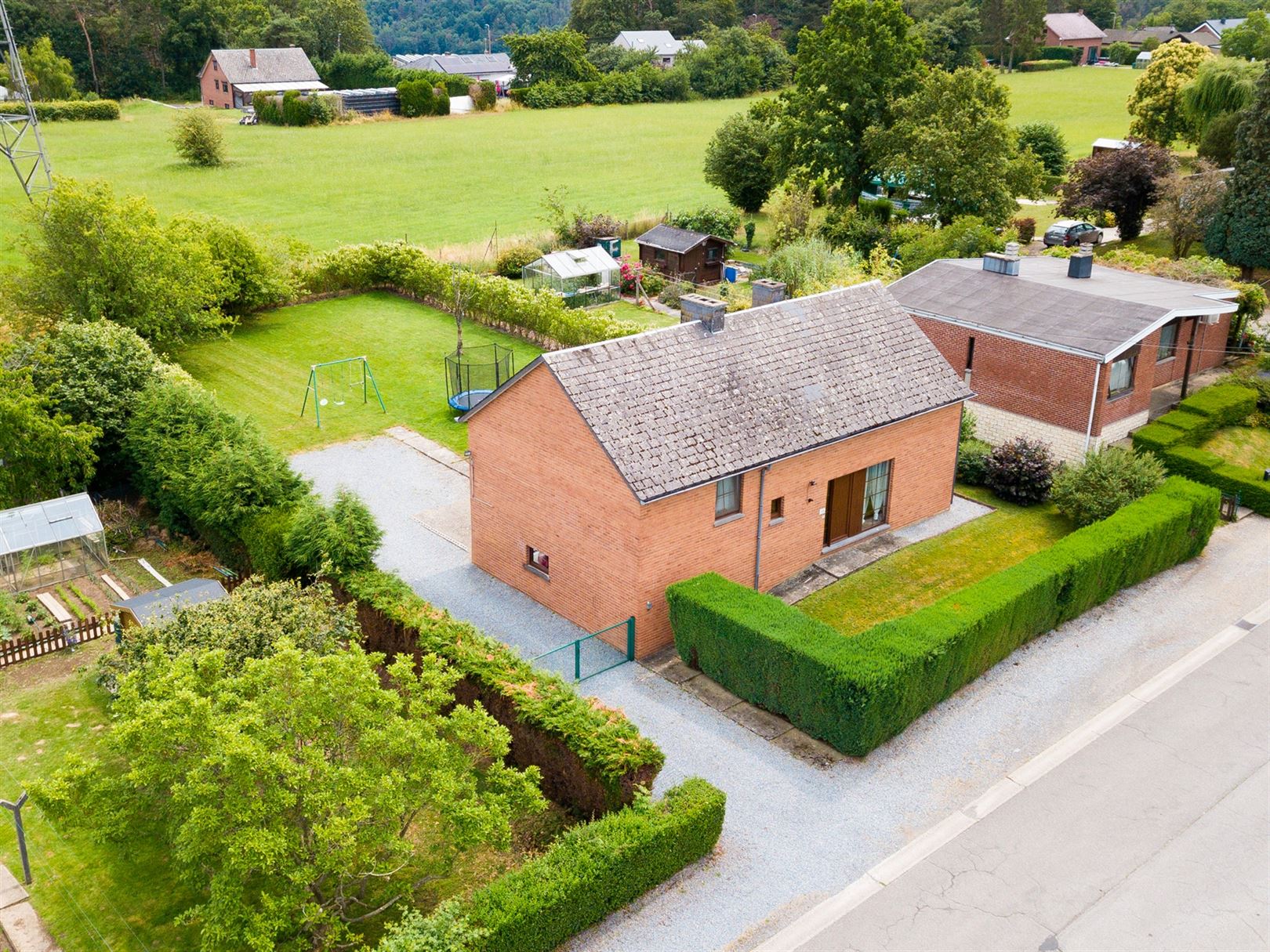 VENDU VENDU VENDU !!! Située dans le charmant village de Marchin, cette jolie maison 4 façades est assise sur un terrain de 851 m² et se compose comme suit: