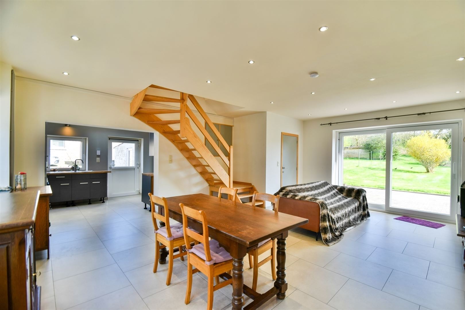 Au rez-de-chaussée : lumineux séjour de 35 m² ouvert sur une cuisine de 10 m² ainsi qu'une buanderie avec WC.