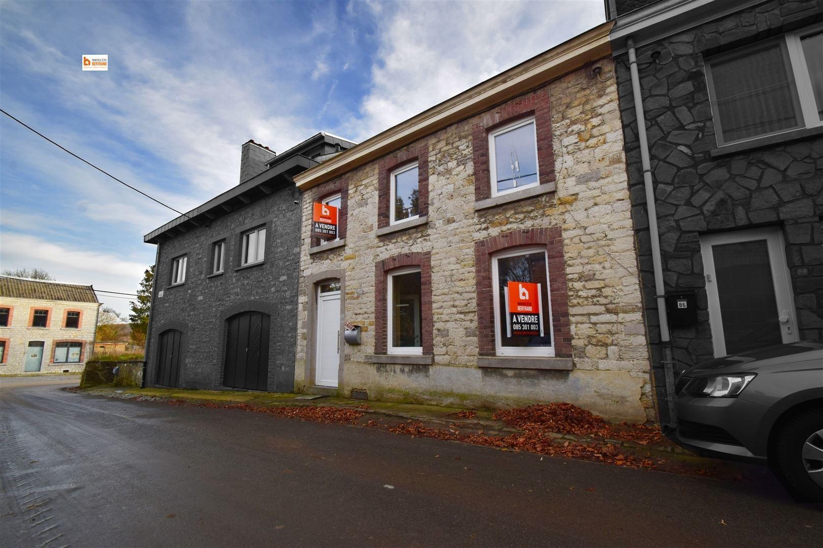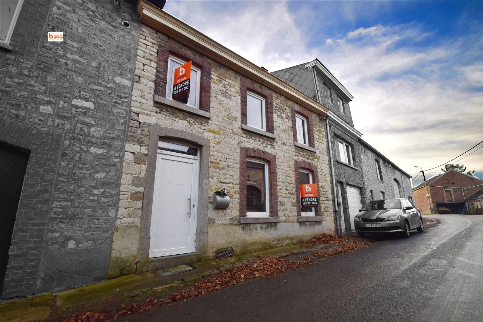 Agréable maison villageoise en pierre du pays en cours de rénovation (à terminer) de 190 m² qui se compose comme suit : trois chambres, une salle de bain, un séjour, une salle à manger, un espace cuisine à aménager, une buanderie, un jardin et cave. Chauffage central au mazout, châssis double vitrage en pvc, électricité bi-horaire. Certains matériaux sont déjà prévu (nouvelles chaudières, boiler, radiateurs...). Possibilité des droits d'enregistrements réduits. Faire offre à partir de 115.000€ sous réserve de l'acceptation des propriétaires ! A visiter sans tarder! www.immo-bertrand.be