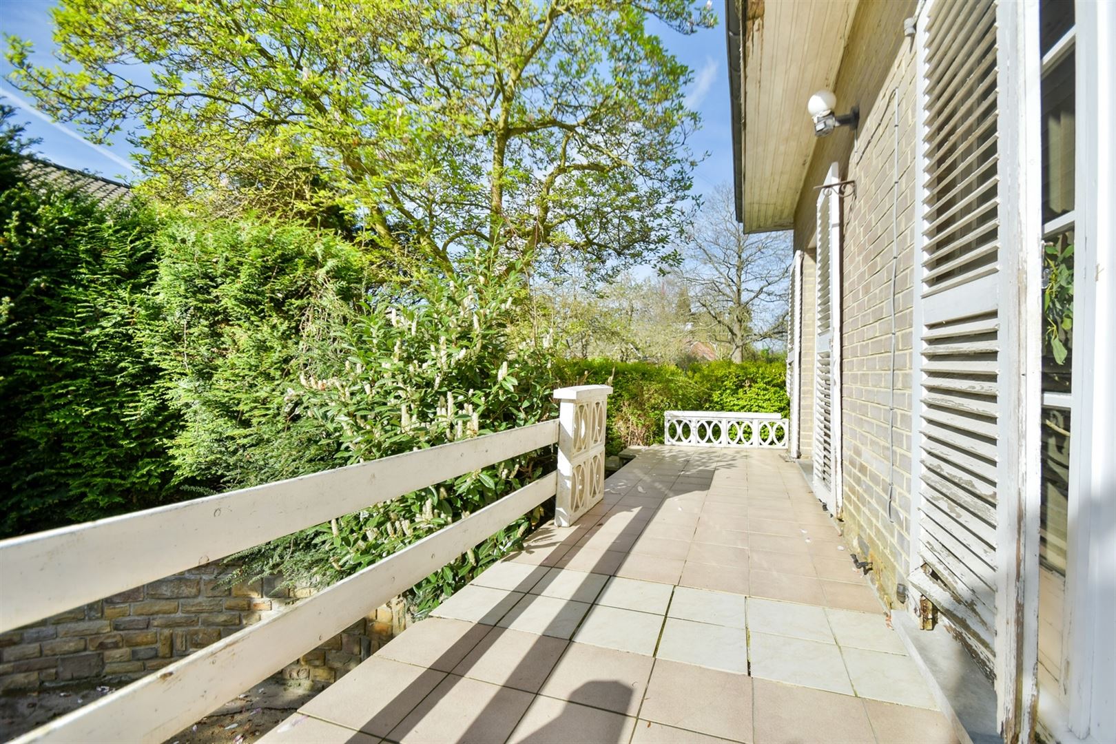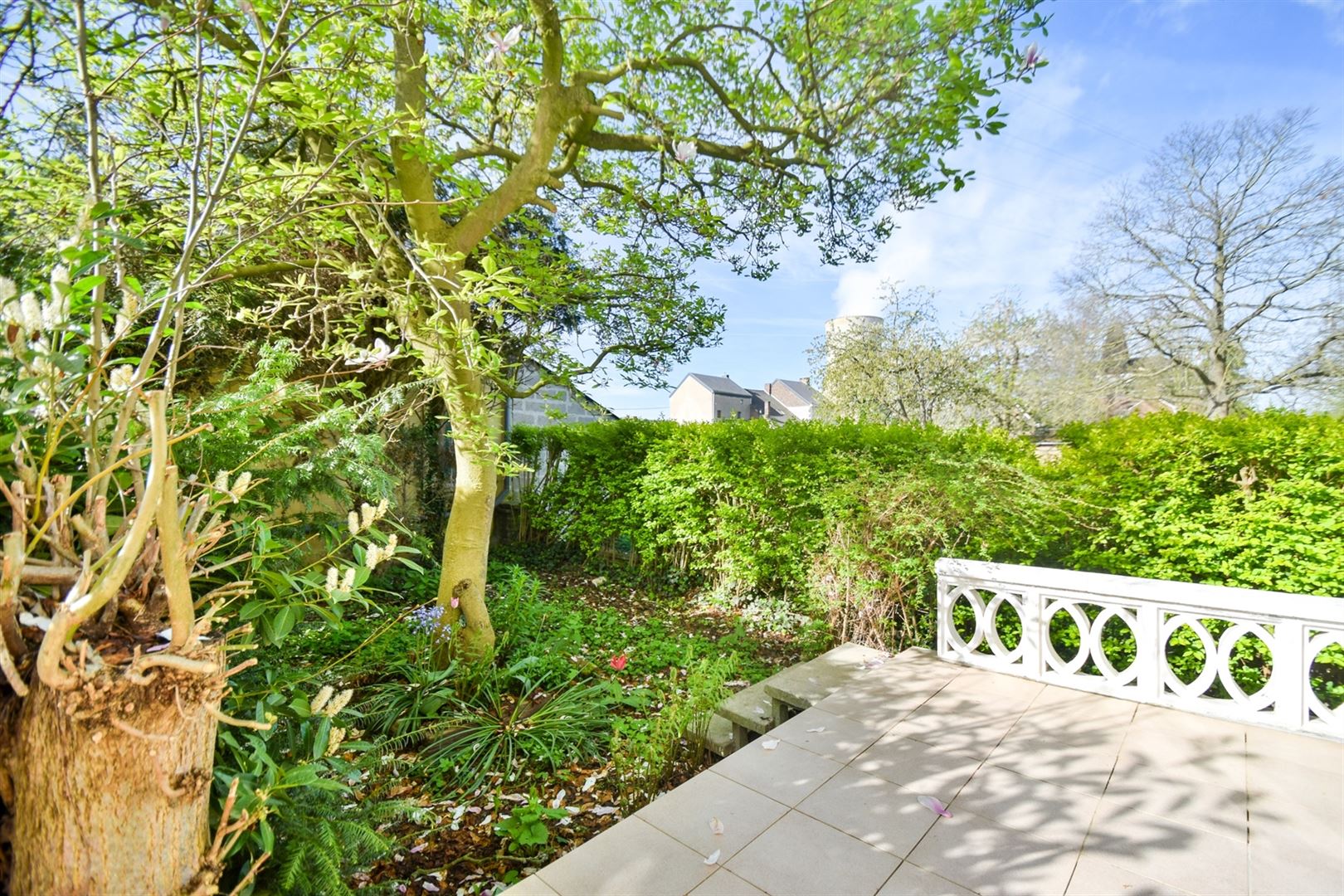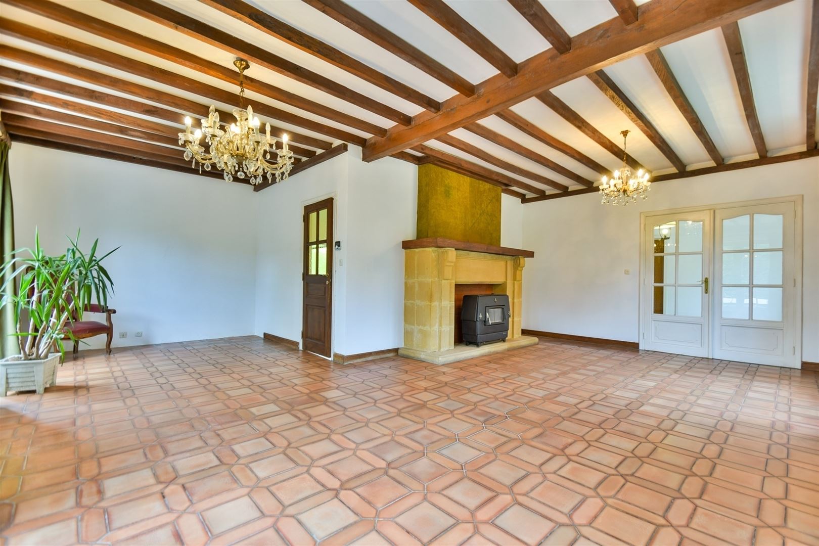 Au rez-de-chaussée: un hall d'entrée, un spacieux séjour d'environ 41m² offrant l'accès à la terrasse, une lumineuse cuisine, 2 agréables chambres (+/- 18m² et 13m²) et une salle-de-bain.