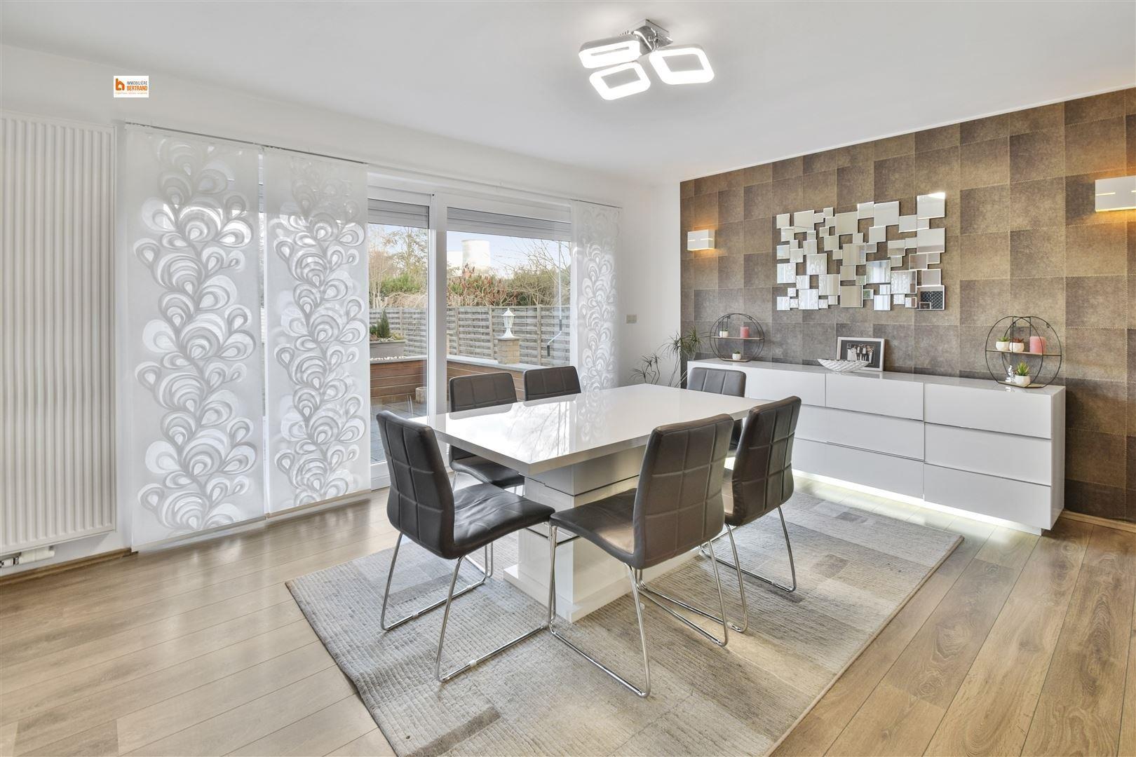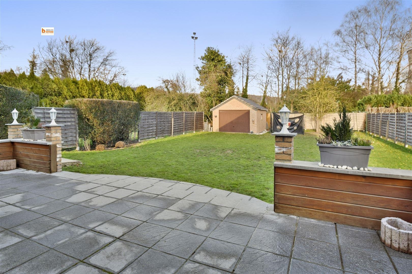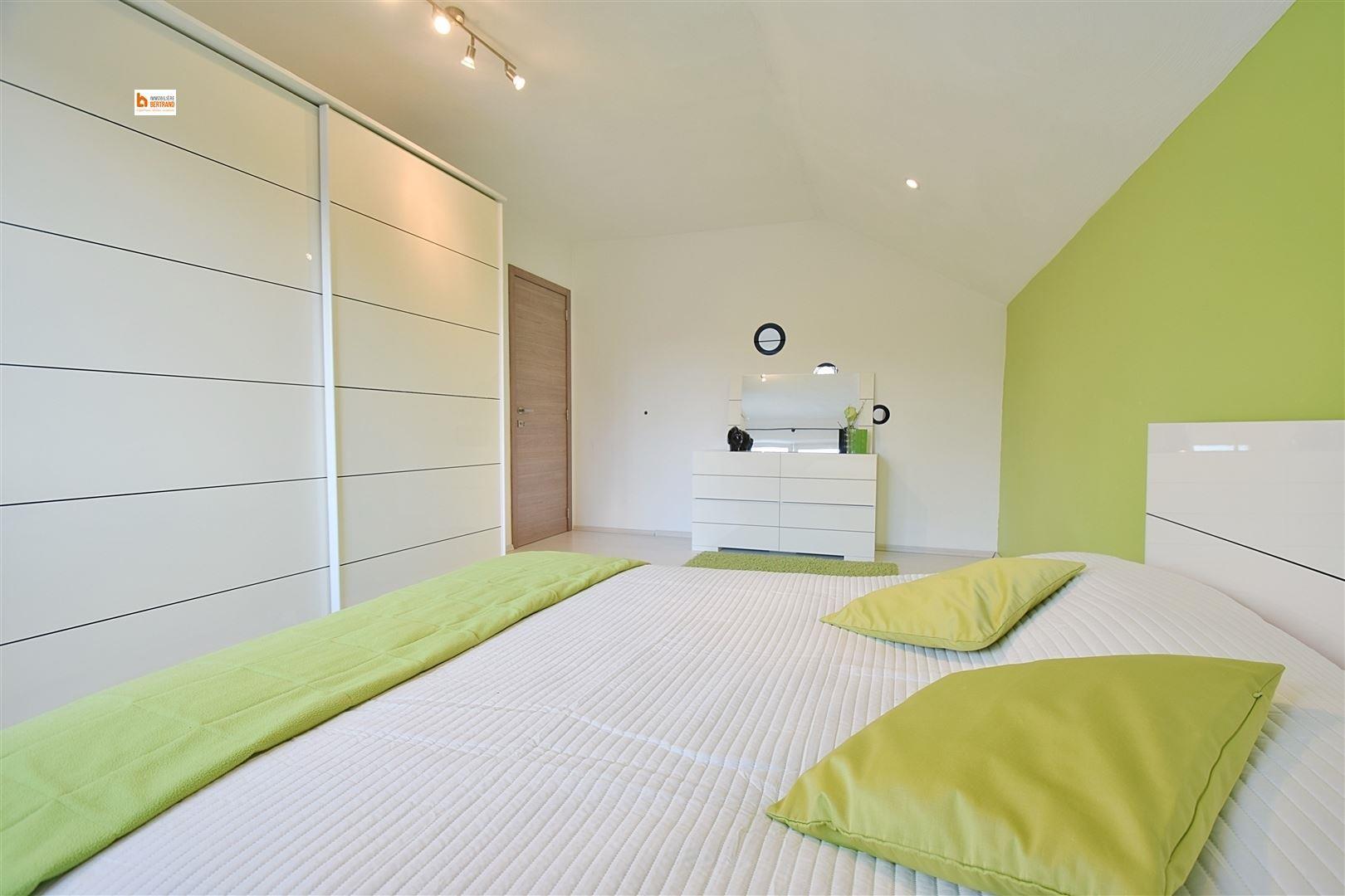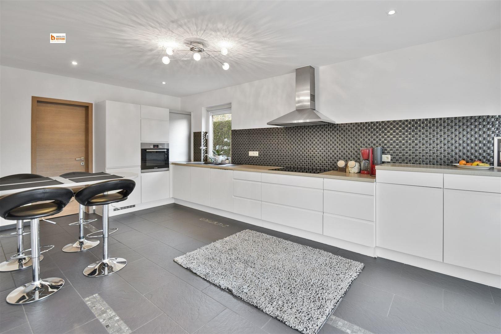 Rez-de-chaussée : Hall d'entrée, un lumineux et grand séjour avec k7 à bois, salle à manger ouvert sur la cuisine donnant sur une belle terrasse de +/- 35 m² et le jardin. Elle comprend également une salle de douche avec wc, un espace buanderie/rangement, un garage avec porte sectionnelle électrique et un abri de jardin/garage.