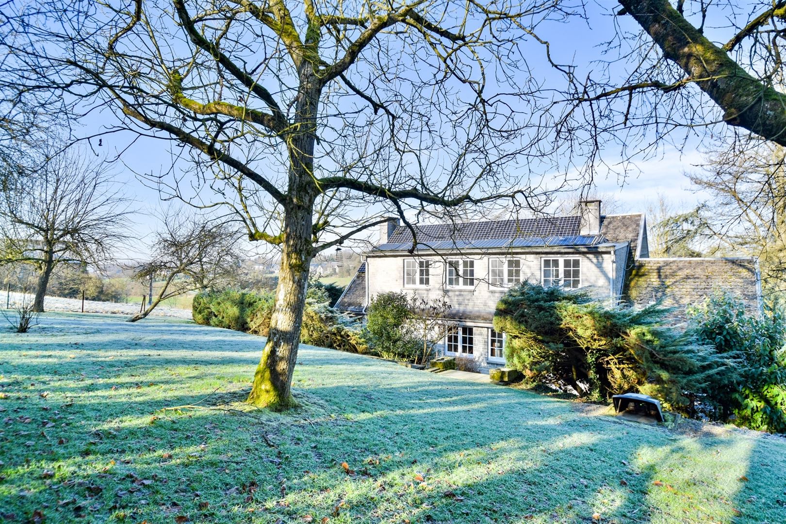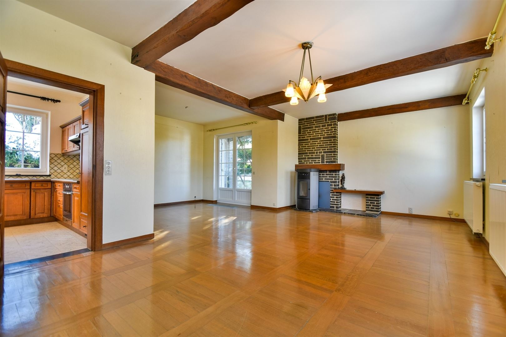 Idéalement située au calme des campagnes condruziennes et à proximité du centre du village, très charmante maison 4 façades implantée sur un terrain de 1.324m² qui se compose comme suit: Au rez-de-chaussée; hall d'entrée avec WC indépendant et espace vestiaire, spacieux et lumineux séjour (salon/salle à manger) de 39m², cuisine entièrement équipée, buanderie et 2 garages. Au 1er étage; palier, salle de bains et 3 belles chambres de 10m², 13m² et 17m². Ce bien est agrémenté d'un joli jardin et d'une agréable terrasse orientés SUD-EST. Caractéristiques techniques: châssis PVC double vitrage, 23 panneaux photovoltaïques, système d'alarme, poêle à pellets, chauffage central (pompe à chaleur). Cette jolie bâtisse vous séduira par son caractère, ses volumes et sa localisation. Faire offre à partir de 369.000€ (sous réserve de l'acceptation des propriétaires. Informations données à titre indicatif et non contractuel! A visiter sans tarder! www.immo-bertrand.be
