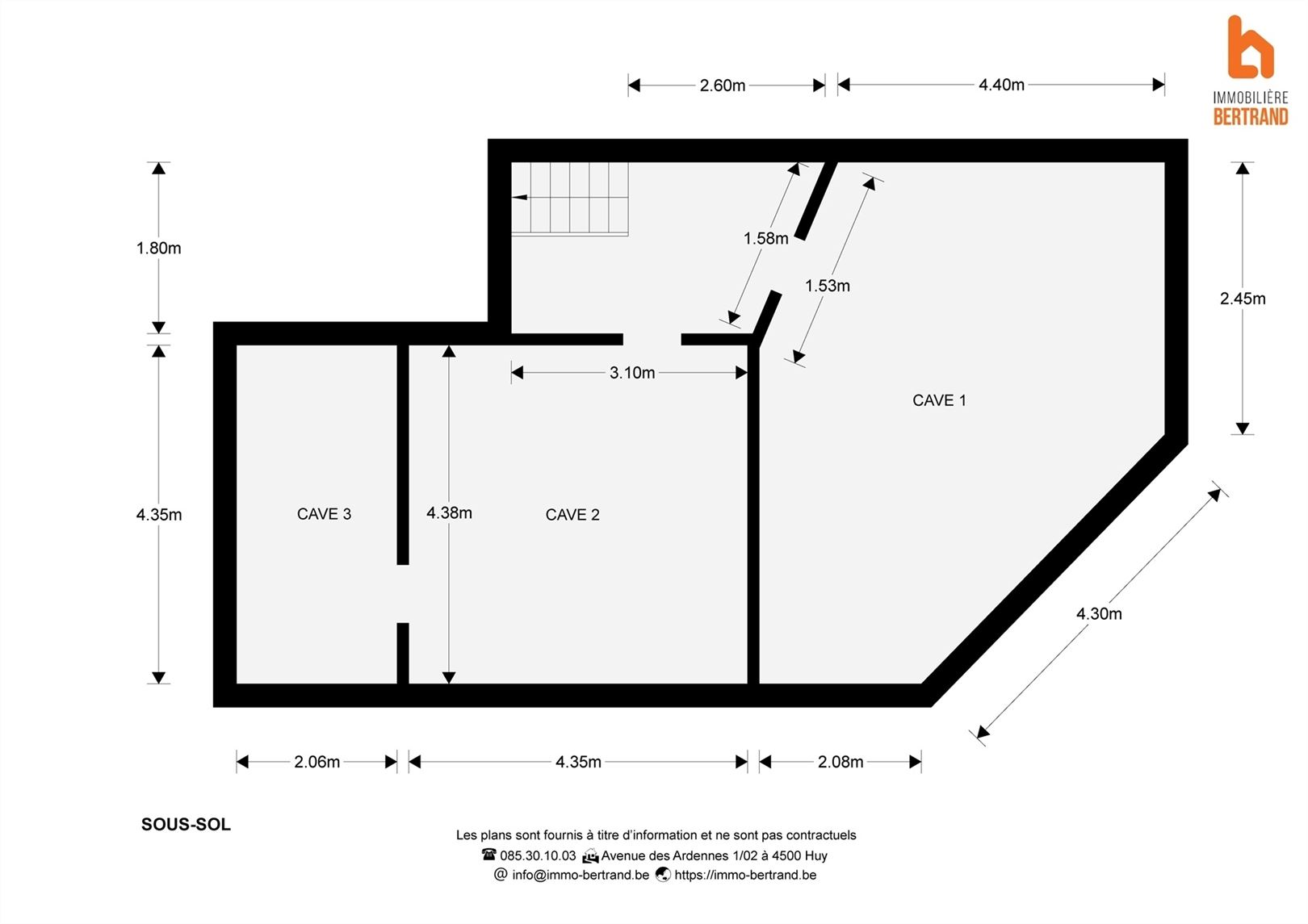 Au sous-sol: 3 caves pour une superficie totale de 54m².
