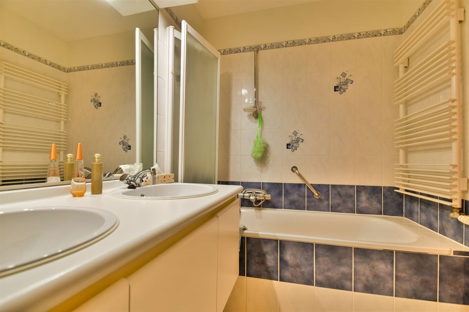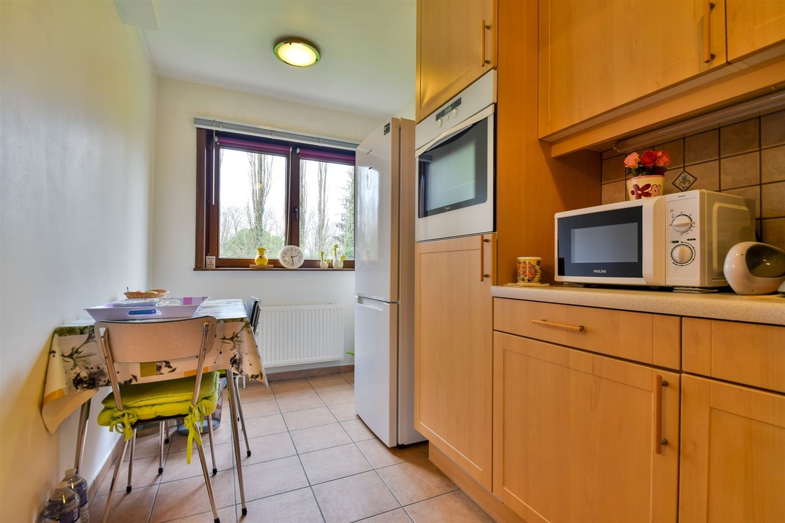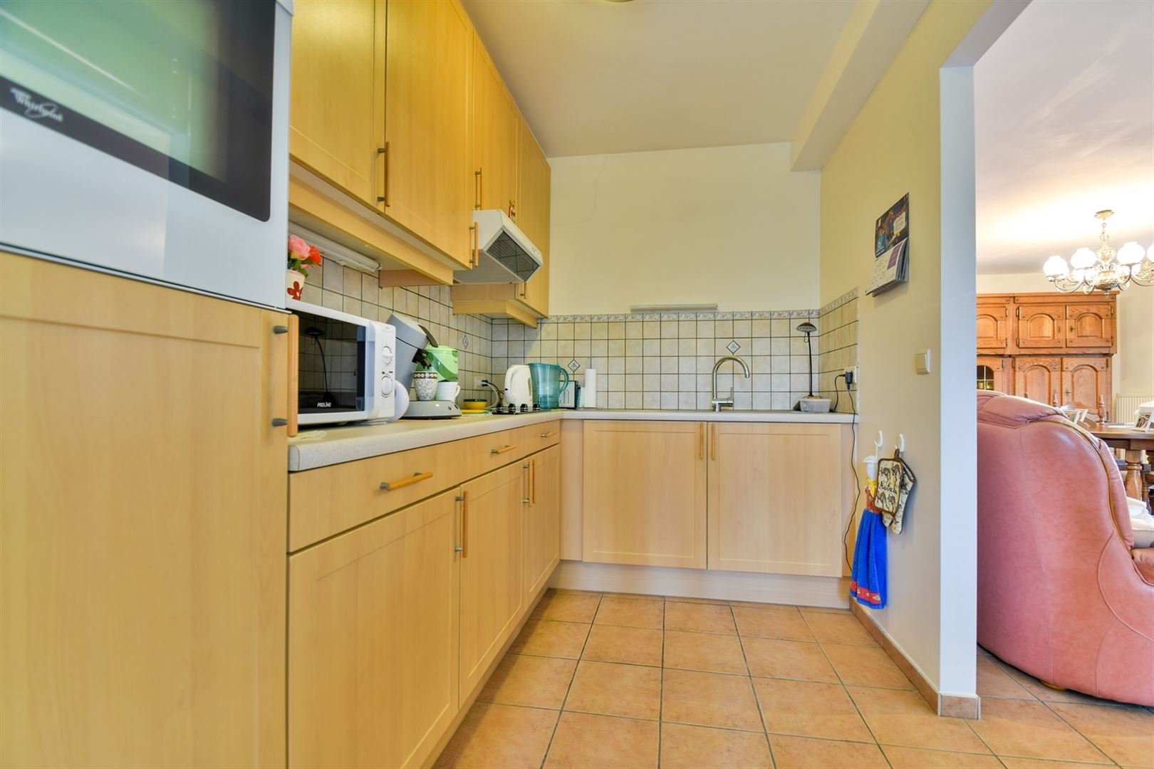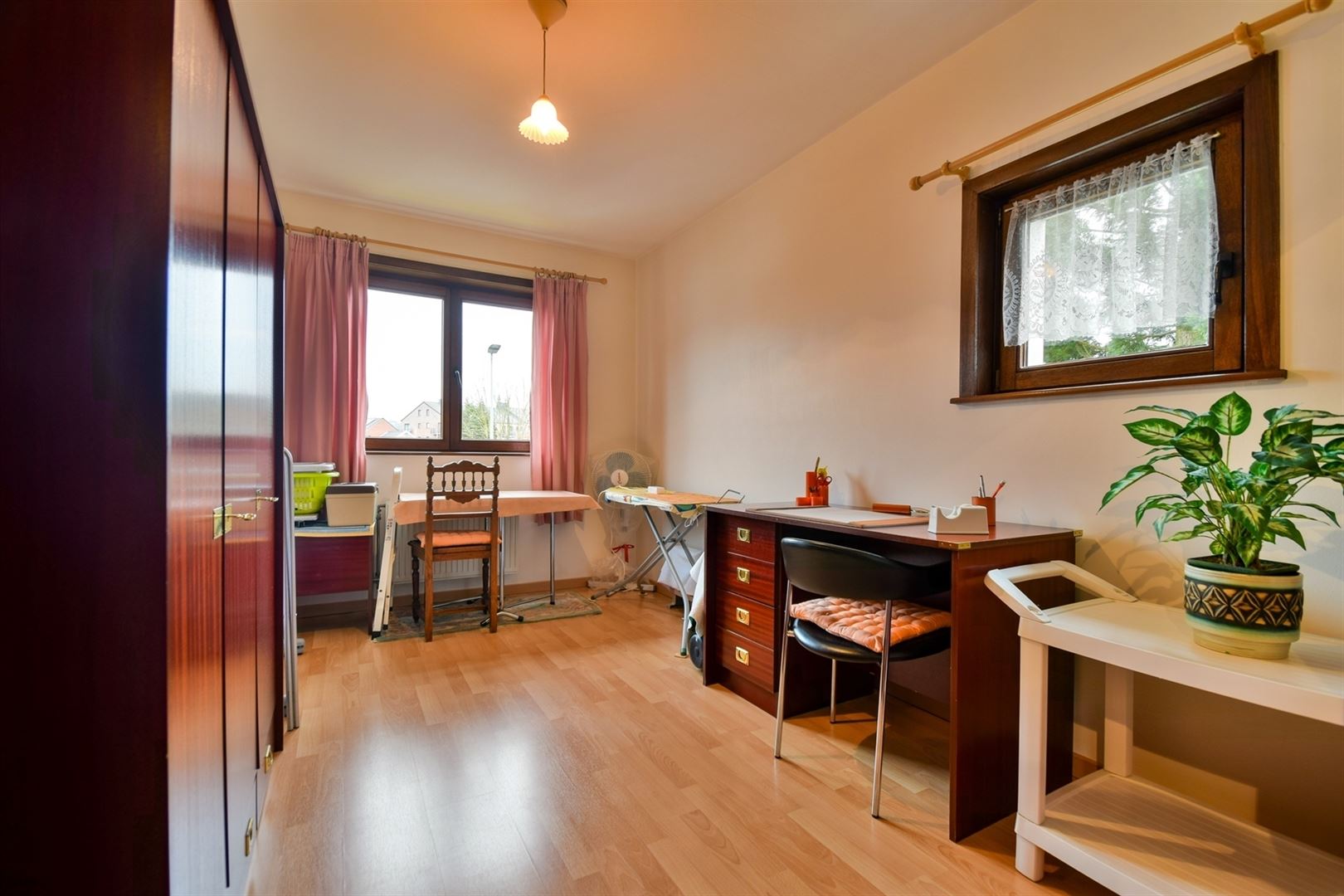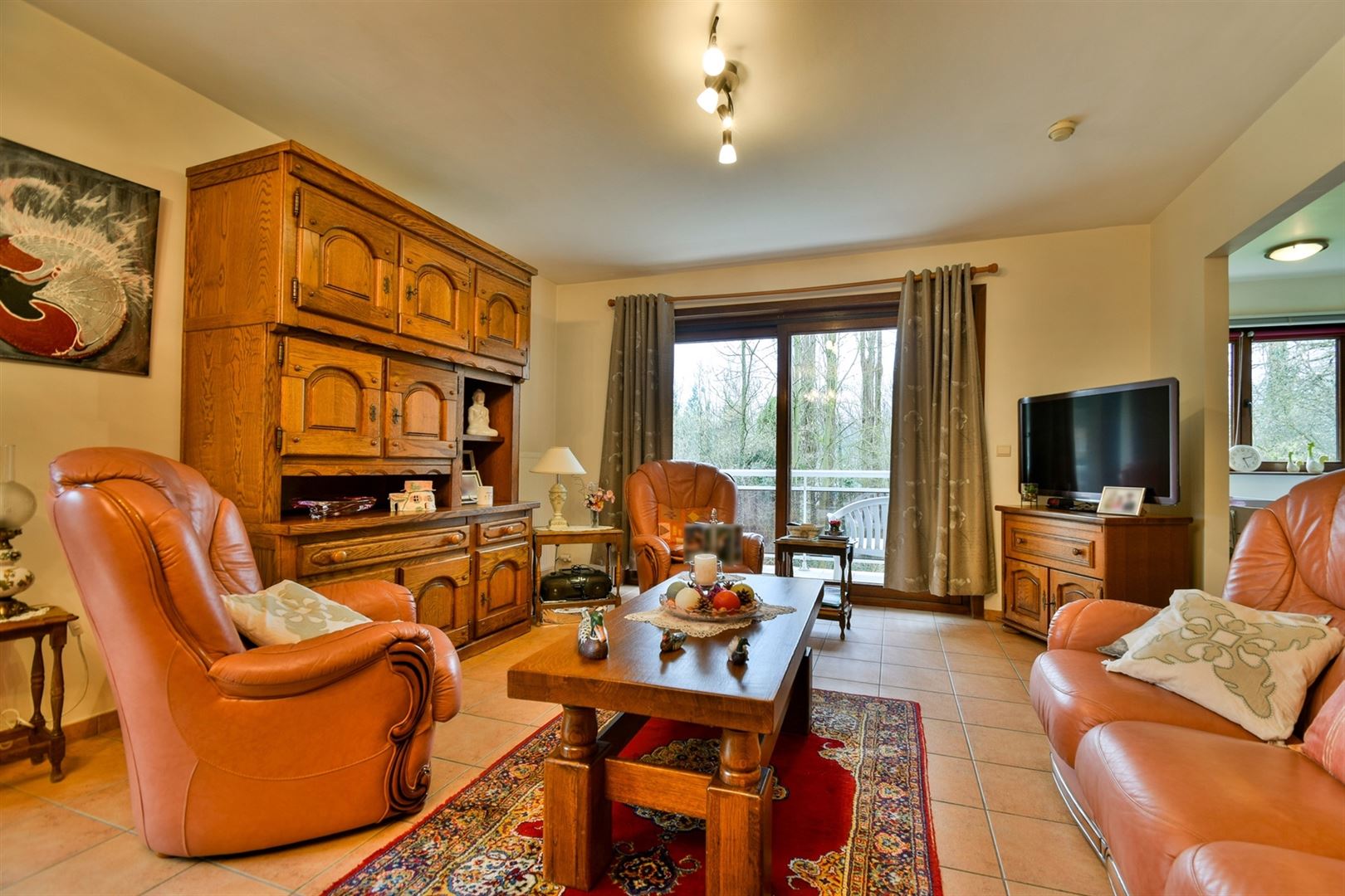 Au 1er étage: un hall d'entrée avec débarras desservant une lumineux séjour de 28m² offrant l'accès à la terrasse couverte orientée Sud-Ouest, une cuisine équipée, un hall de nuit, 2 agréables chambres (+/- 13m² et 12m²), une salle de bain et une toilette indépendante.