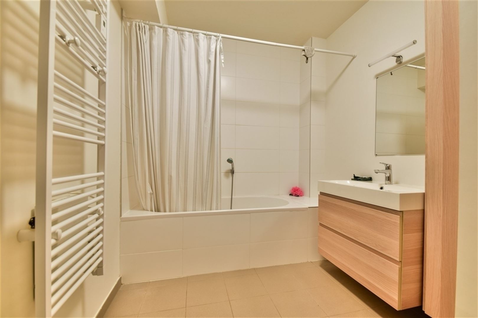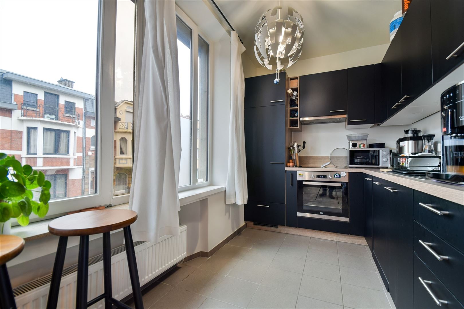 Au 2ème étage: un hall d'entrée, un lumineux séjour de 29m² ouvert sur la cuisine entièrement équipée, 2 spacieuses chambres (+/- 16m² et 15m²), une salle-de-bain et une toilette indépendante.