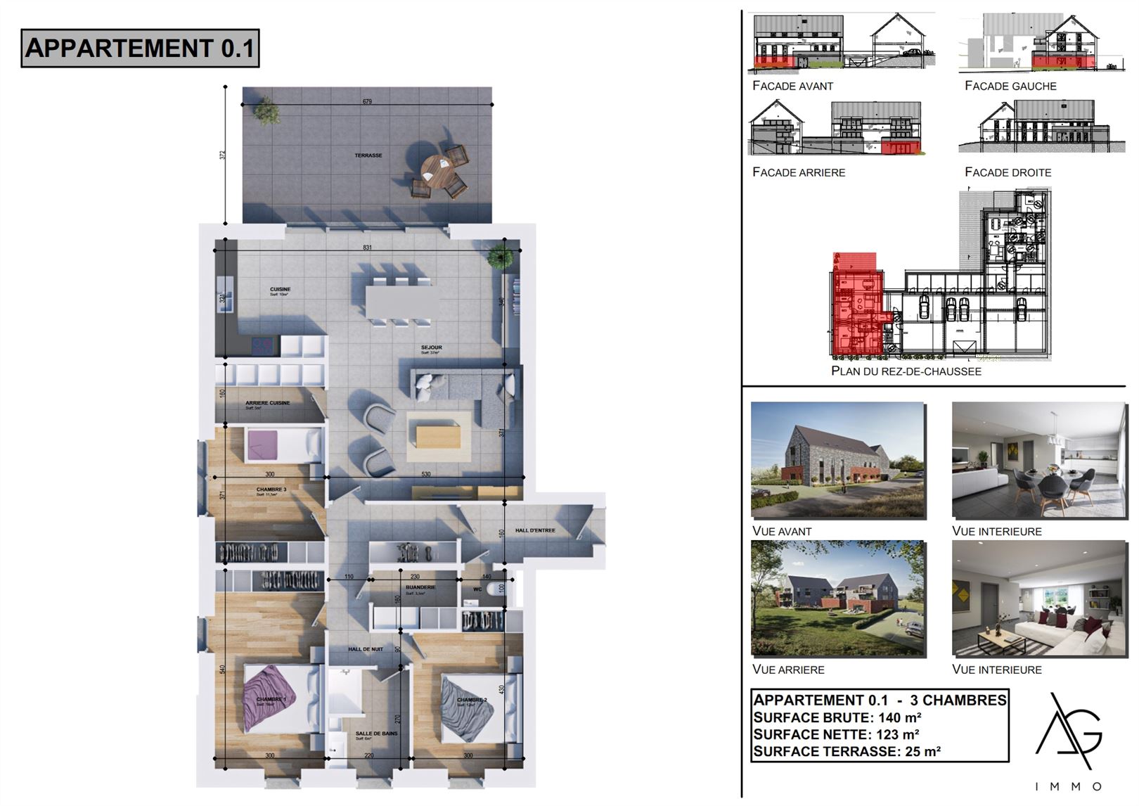 Situé au cœur du charmant village de Nandrin, cet appartement 3 chambres de 123 m² offre une magnifique terrasse de 25 m² ainsi qu'un jardin privatif. L'agencement de l'appartement comprend un hall d'entrée avec des toilettes séparées un grand séjour avec cuisine ouverte, une arrière-cuisine, 3 chambres, une salle de douche et une buanderie. Les finitions sont de haute qualité, avec un ascenseur et une isolation thermique et acoustique soigneusement réalisée. Le prix comprend une cuisine entièrement équipée ainsi que des revêtements de sol en carrelage et/ou parquet. Il est également possible d'acheter une cave et un emplacement de parking, intérieur ou extérieur, en supplément. Le paiement est prévu à la livraison, qui est estimée pour 2026. La vente est soumise à la TVA de 21%