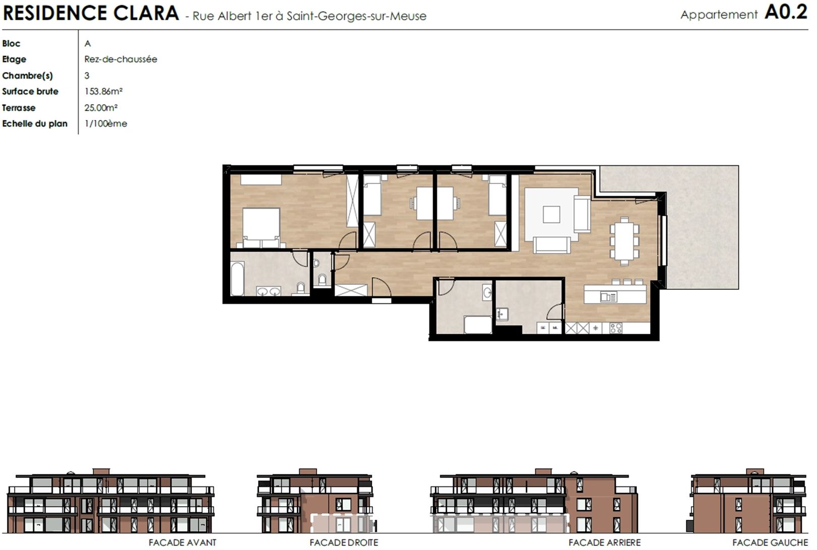 Situé au rez-de-chaussée du "Bloc A", ce bel appartement est composé d'un beau séjour ouvert sur la cuisine entièrement équipée et offrant l'accès à la terrasse de 25 m², 3 agréables chambres, une salle de bain, une buanderie et une toilette indépendante. Caractéristiques techniques : PEB "A" annoncé, grandes ouvertures sur l'extérieur avec vue sur jardin, châssis aluminium triple vitrage, chauffage par le sol via pompe à chaleur individuelle air/eau, panneaux photovoltaïques, VMC double flux et ASCENSEUR.