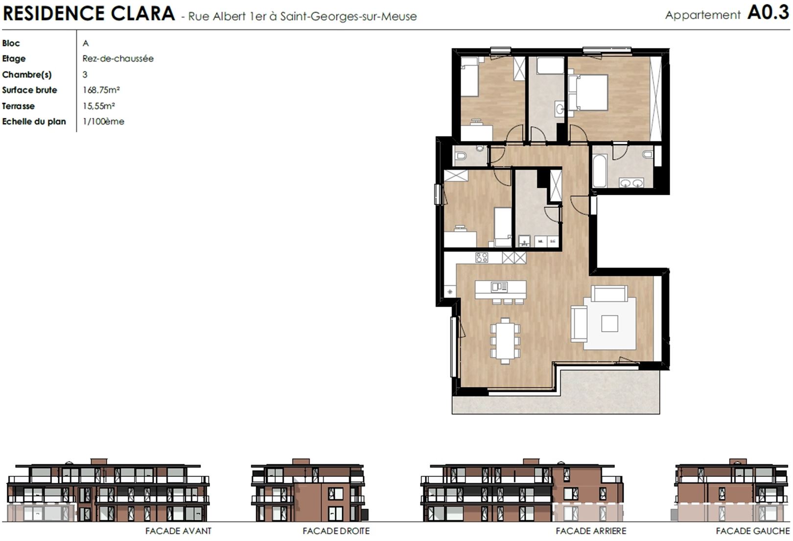 Situé au rez-de-chaussée du "Bloc A", ce bel appartement est composé d'un beau séjour ouvert sur la cuisine entièrement équipée et offrant l'accès à la terrasse de 15 m², 3 agréables chambres, une salle de douche, une salle de bain, une buanderie et une toilette indépendante. Caractéristiques techniques : PEB "A" annoncé, grandes ouvertures sur l'extérieur avec vue sur jardin, châssis aluminium triple vitrage, chauffage par le sol via pompe à chaleur individuelle air/eau, panneaux photovoltaïques, VMC double flux et ASCENSEUR.
