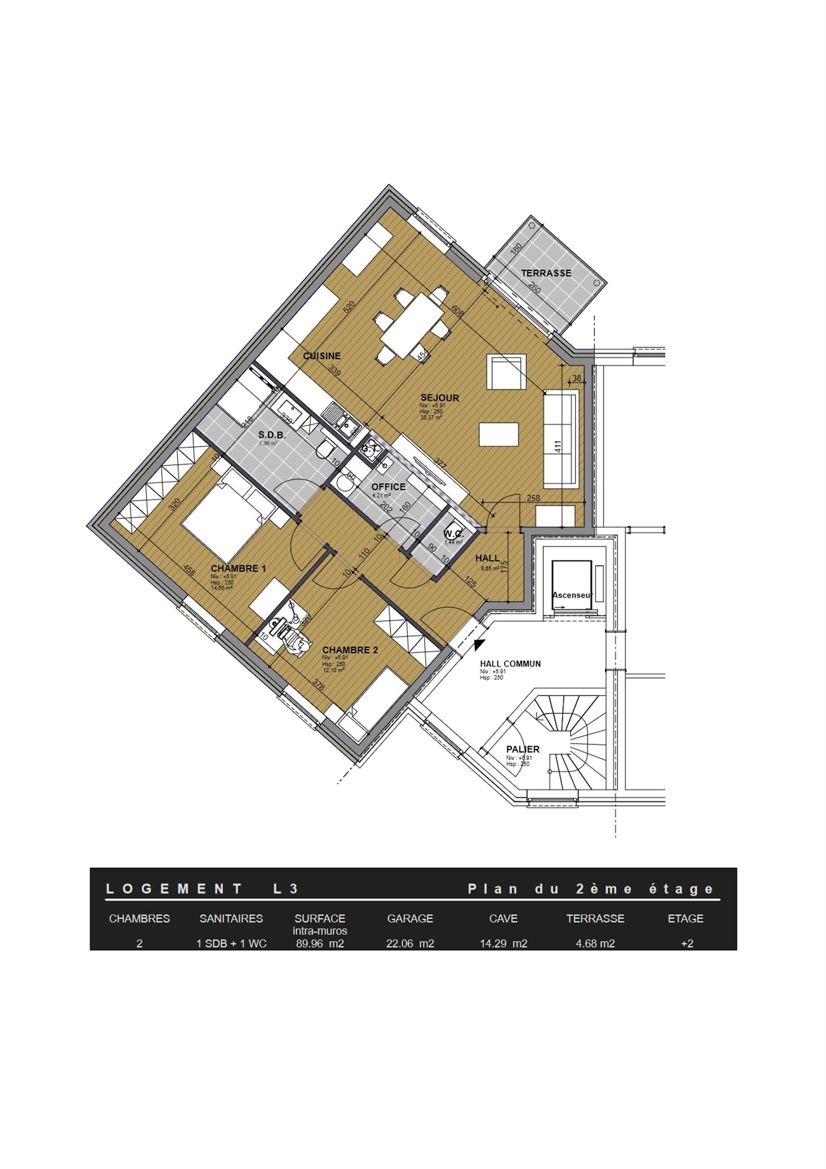 Caractéristiques techniques: châssis PVC double vitrage, un chauffage par le sol au gaz de ville, une cuisine équipée et une ventilation simple flux et ascenseur. La livraison se fait à l’acte authentique, et la vente est soumise au régime TVA de 21 %.