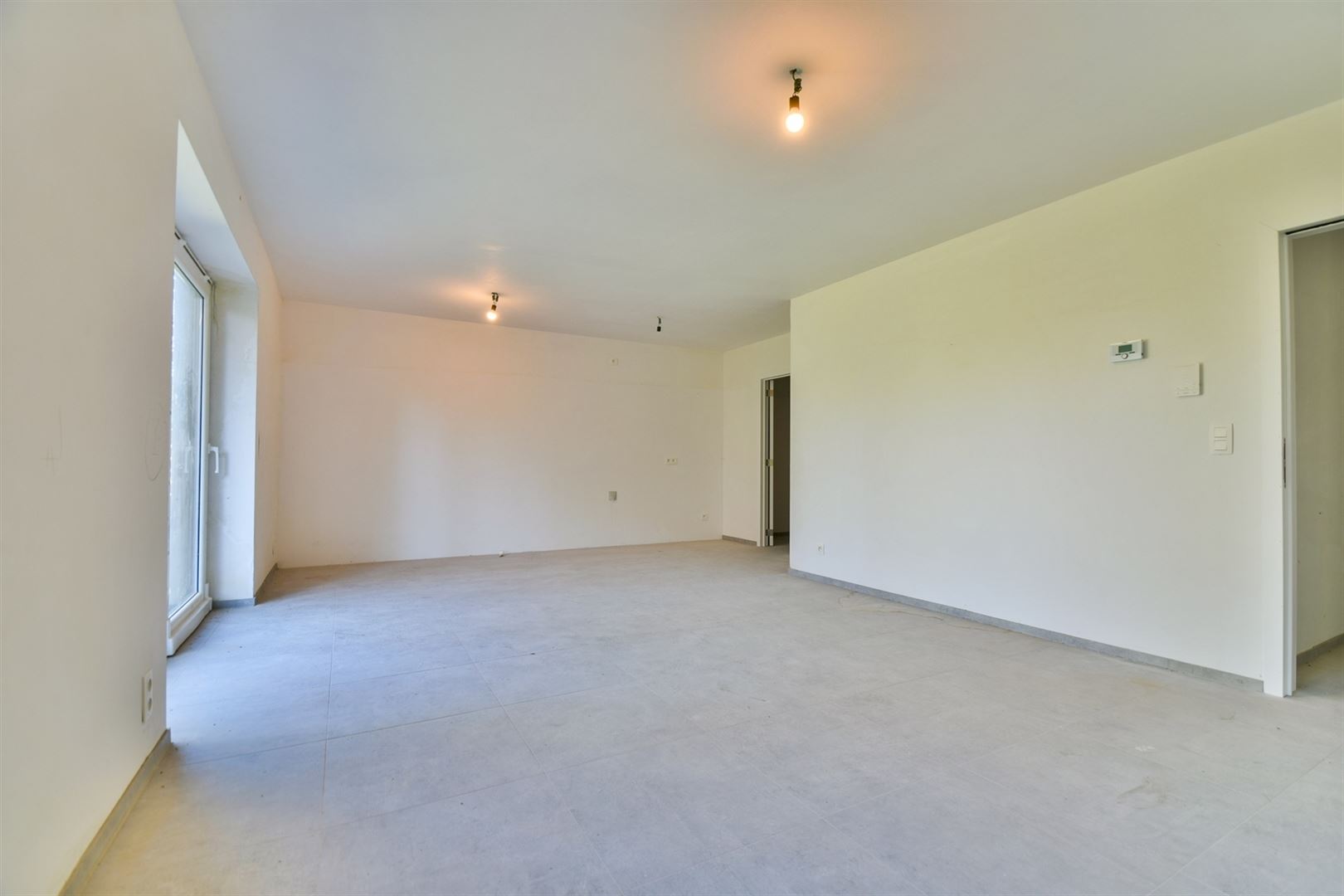 Au rez-de-jardin: un hall d'entrée desservant un beau séjour ouvert sur la cuisine équipée pour une superficie de 32m², une terrasse de +/-5m², 2 agréables chambres (12m² et 10m²) une salle-de-douche et une buanderie. Parking et cave en supplément (21.500,00€ HTVA).