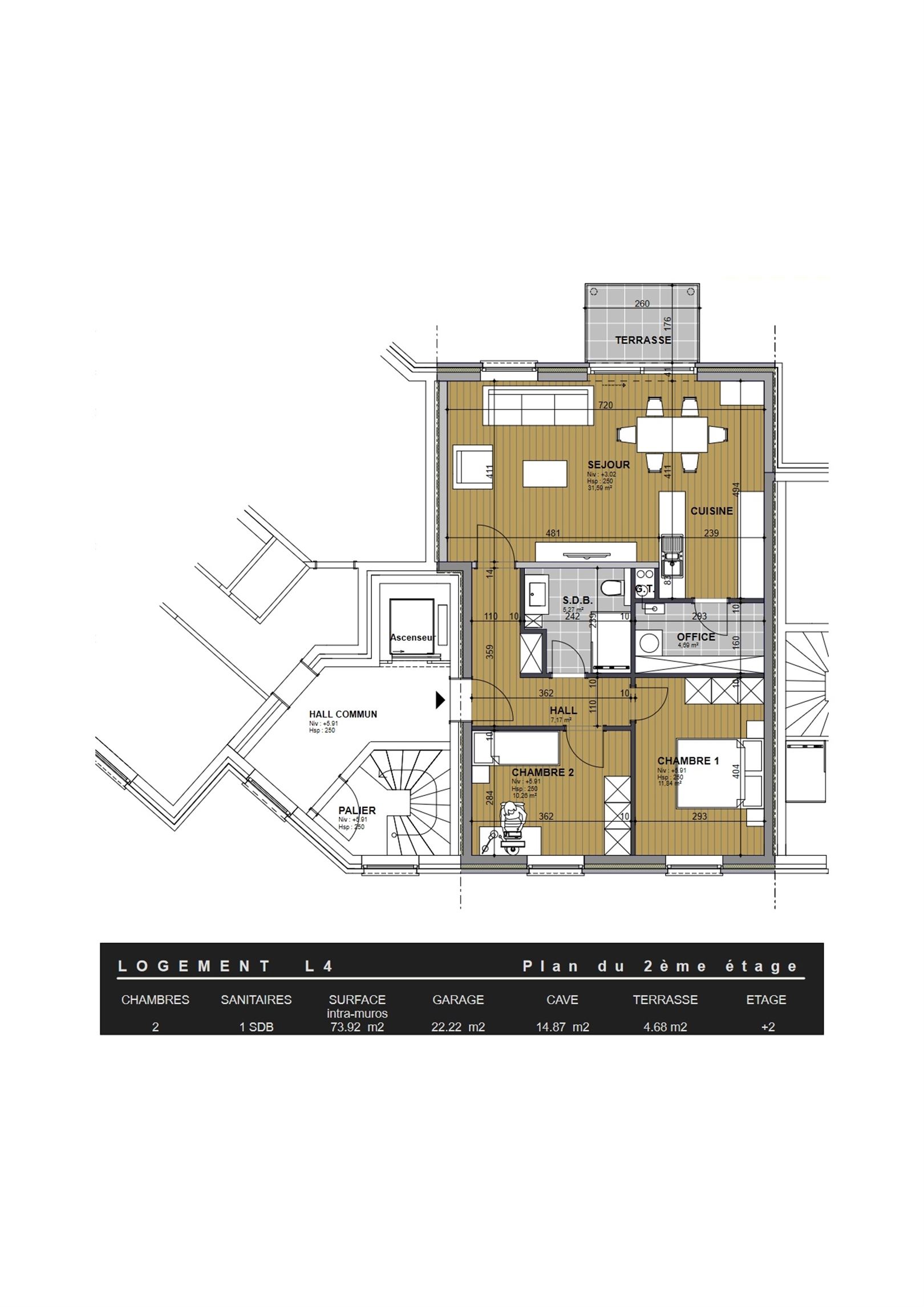 Caractéristiques techniques: châssis PVC double vitrage, un chauffage par le sol au gaz de ville, une cuisine équipée et une ventilation simple flux et ascenseur. La livraison se fait à l’acte authentique, et la vente est soumise au régime TVA de 21 %.