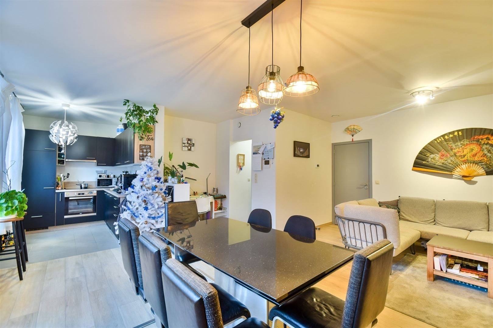 Au 1er étage: un hall d'entrée, un lumineux séjour de 31m² ouvert sur la cuisine entièrement équipée, 2 spacieuses chambres (+/- 15m² et 11m²) dont une avec balcon orienté Sud-Ouest, une salle-de-bain et une toilette indépendante.
