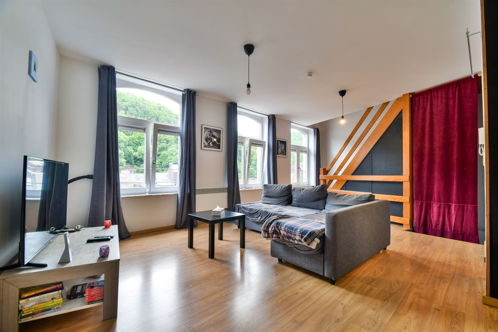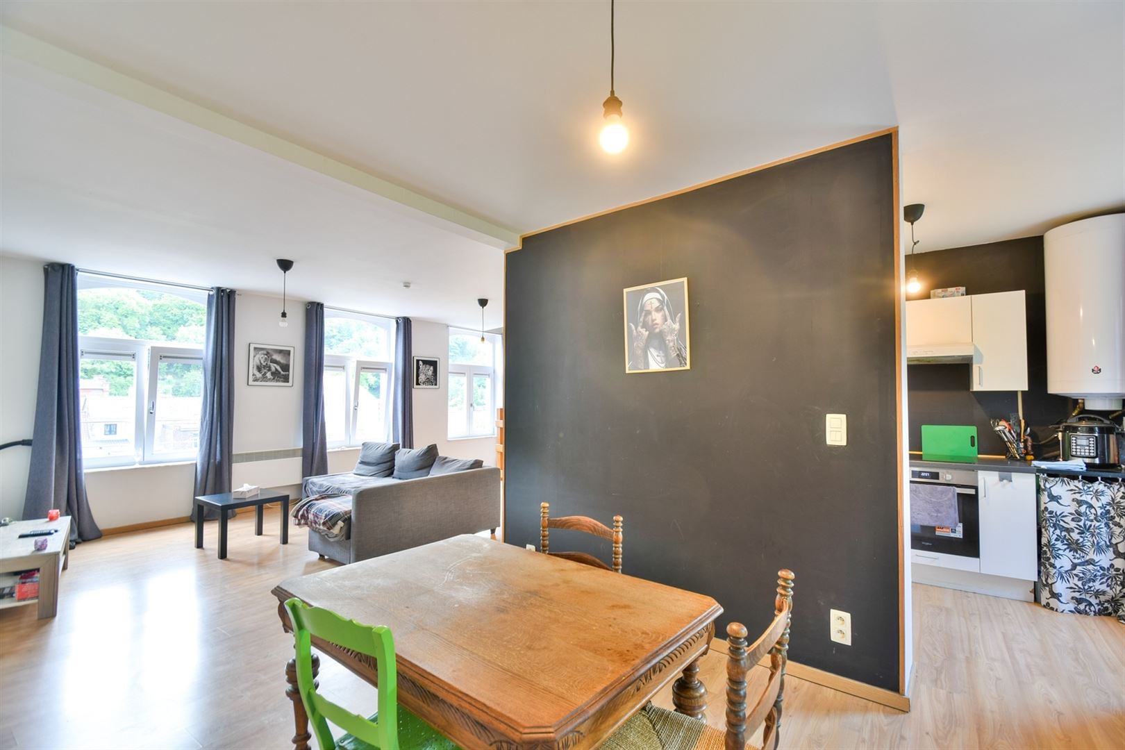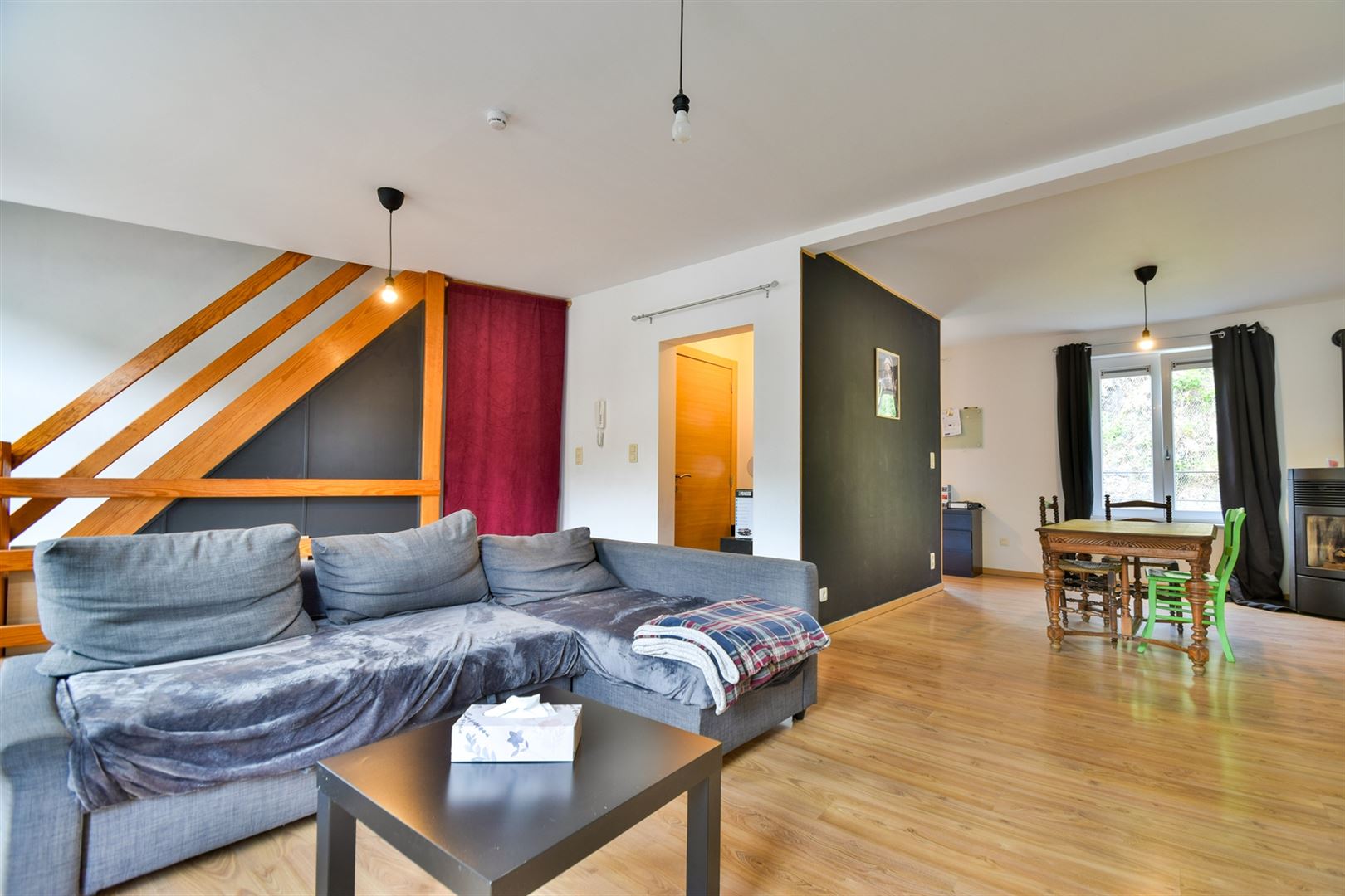 Proche des commodités et du centre ville de Huy, agréable duplex entièrement rénové se composant comme suit: lumineux séjour, salle-à-manger, cuisine semi équipée, 2 chambres, une salle de douche et toilette indépendante. Chauffage via poêle à pellets et radiateurs électriques à prise directe, électricité conforme, châssis pvc double vitrage. Deux mois de caution. Loyer : 700€/mois. Communs : 35€/mois. Libre le 1er août 2025.