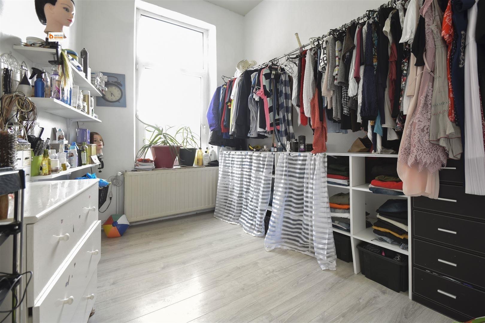 2e étage : Espace rangement/bureau/chambre de +/- 9 m², une spacieuse chambre de +/- 15 m²