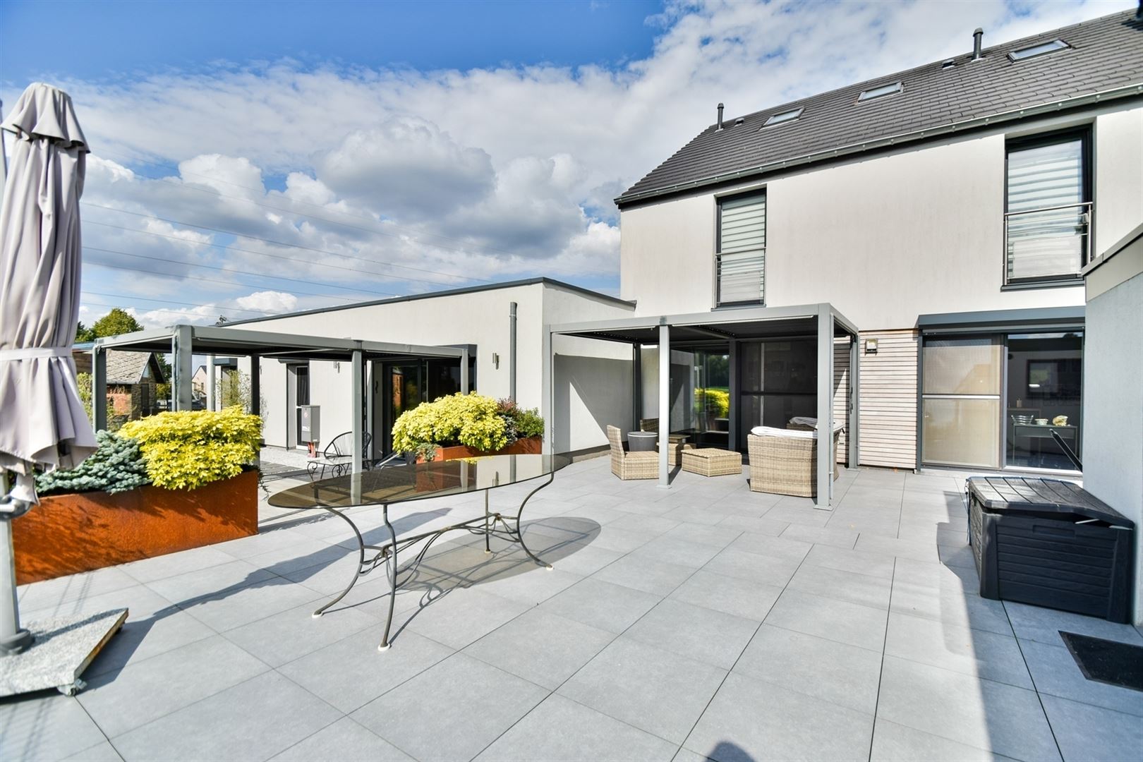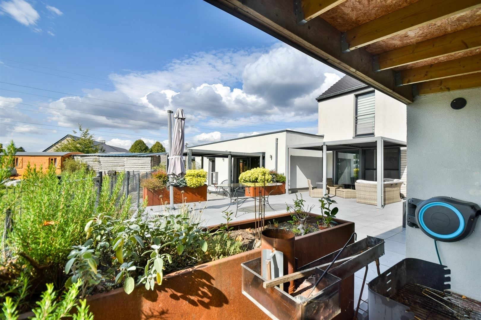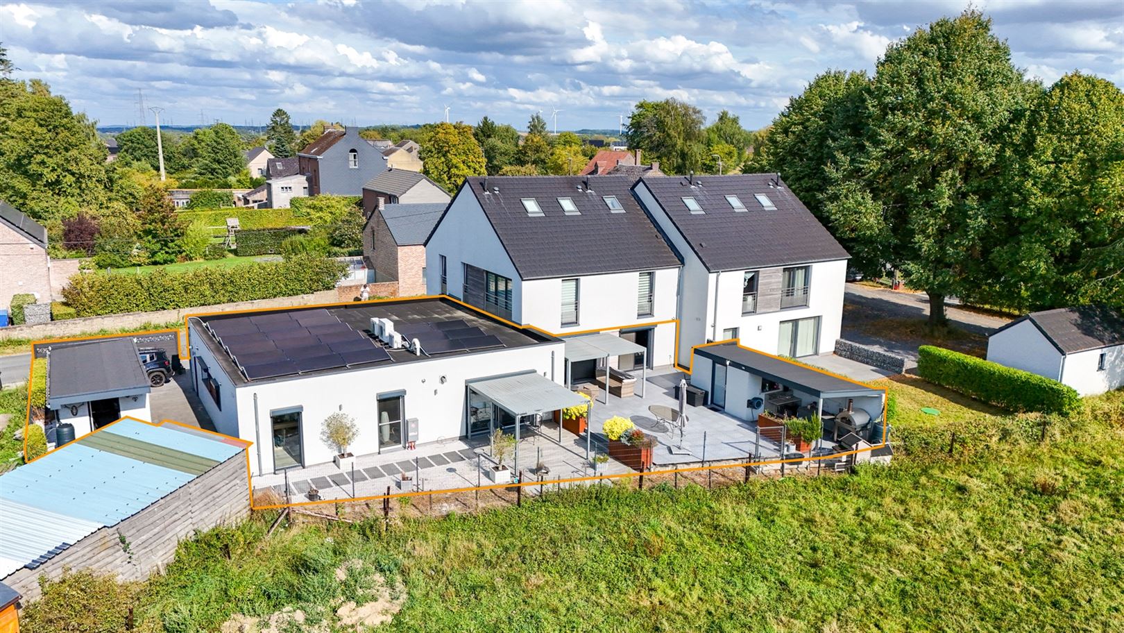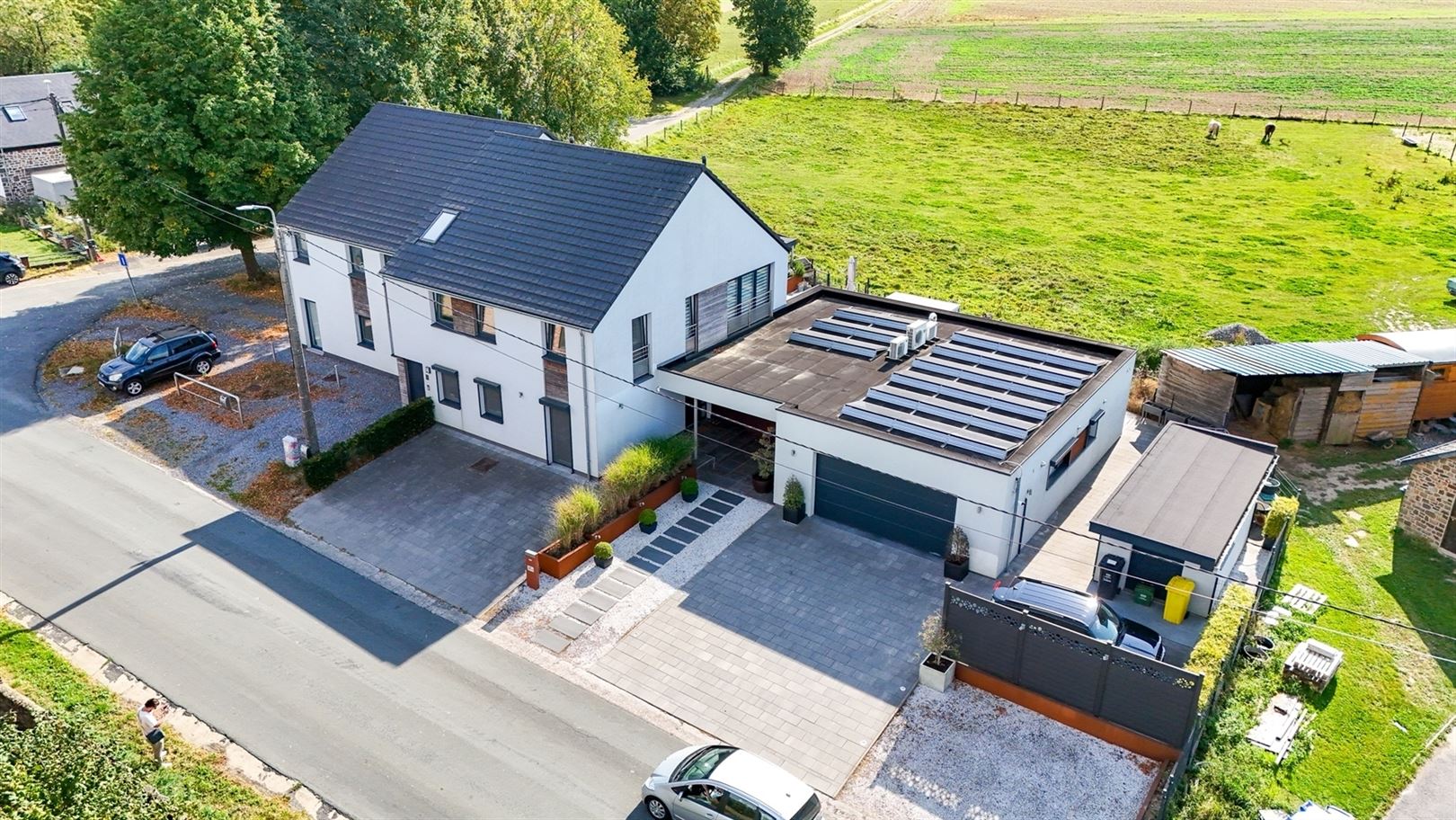 Caractéristiques techniques : excellente performance énergétique "PEB A", chauffage via pompe à chaleur air-air réversible, chauffage central au gaz propane et poêle au gaz, 24 panneaux photovoltaïques, électricité conforme, châssis PVC triple vitrage avec volets électriques, citerne à eau de pluie, ventilation simple flux, adoucisseur d'eau, porte de garage motorisée et système de caméras de surveillance.