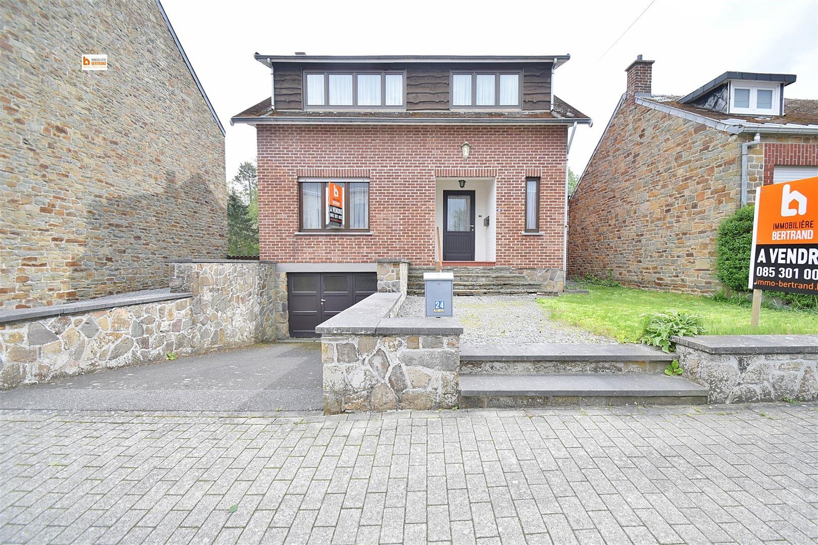 VENDU VENDU VENDU ! Maison villageoise située dans une rue calme composée de: vaste hall d'entrée, salon, salle à manger, cuisine équipée et coin à manger avec accès au jardin, wc séparé, 3 chambres (poss 4), dressing, salle de bain caves et garage 2 voitures. Jardin clôturé et arboré orienté Sud-Est, atelier de +/- 200m² sur deux niveaux. Châssis en bois, double vitrage, électricité bi-horaire non réceptionnée, chauffage central au mazout. Proche de toutes les commodités, cette maison vous séduira par ses possibilités d'aménagement, ses espaces et sa situation. Faire offre à partir de 199.000,00 euros sous réserve de l'acceptation des propriétaires. A visiter sans tarder. www.immo-bertrand.be