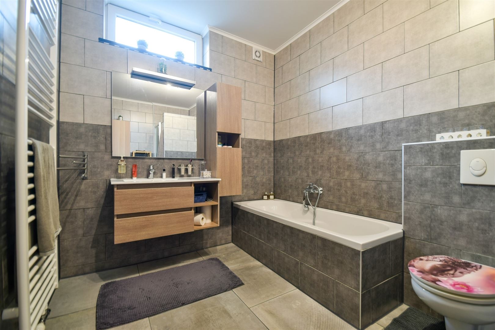 Au 1er étage, un hall de nuit dessert une spacieuse chambre de 17,50m² ainsi qu’une salle de bains équipée d’une douche, d'une baignoire, d’un lavabo et d’un WC.