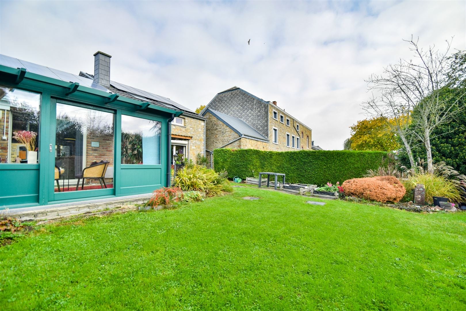 Idéalement située dans un environnement calme et paisible, charmante maison de campagne entièrement rénovée qui se compose comme suit: au rez-de-chaussée; hall d'entrée avec espace vestiaire, spacieux et lumineux séjour ouvert sur une cuisine entièrement équipée, agréable véranda, première chambre avec dressing et salle de bains. Au 1er étage; palier de nuit, deux belles grandes chambres de ± 11m² et 14m², quatrième chambre de 9m² avec douche et WC, bureau ou second salon et salle de douche. Cette jolie propriété bénéficie également d'une terrasse, d'un abri de jardin et d'un joli jardin bien orienté SUD-EST. Caractéristiques techniques: chauffage central avec pompe à chaleur DAIKIN, poêle à pellets, air conditionné réversible dans la véranda, toiture tuiles isolée (15cm - 30cm), murs intérieurs isolés (13cm), plancher sur cave isolé (6cm), excellente performance énergétique (PEB B!), 34 panneaux photovoltaïques, volets électriques, citerne d'eau de pluie avec groupe hydrophore et 3 filtres, mini-station d'épuration. Idéale pour une habitation familiale ou une seconde résidence, cette jolie bâtisse vous séduira par son côté chaleureux, son style unique et son grand confort intérieur. Faire offre à partir de 379.000€ (sous réserve de l'acceptation du propriétaire). Informations données à titre indicatif et non contractuel. www.immo-bertrand.be