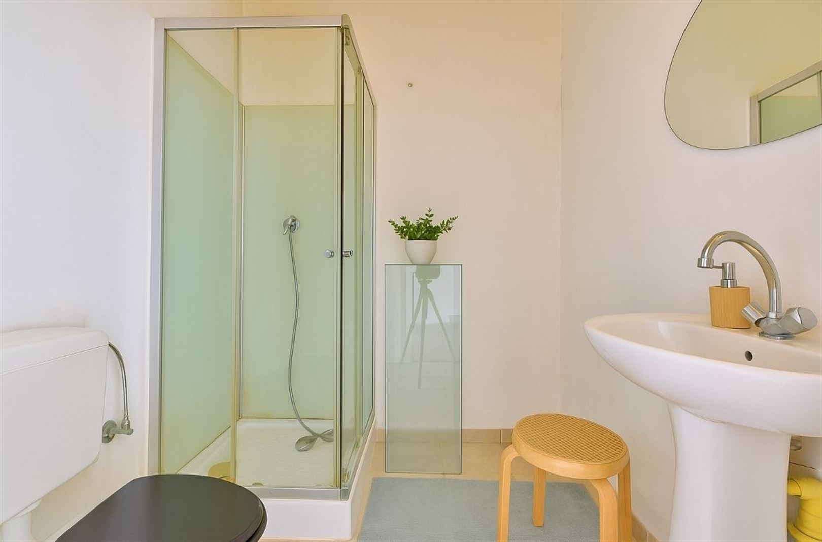 Un agréable séjour/chambre de +- 26 m², une cuisine équipée (évier, taque de cuisson, hotte, frigo/congélateur) et une salle de douche avec WC.