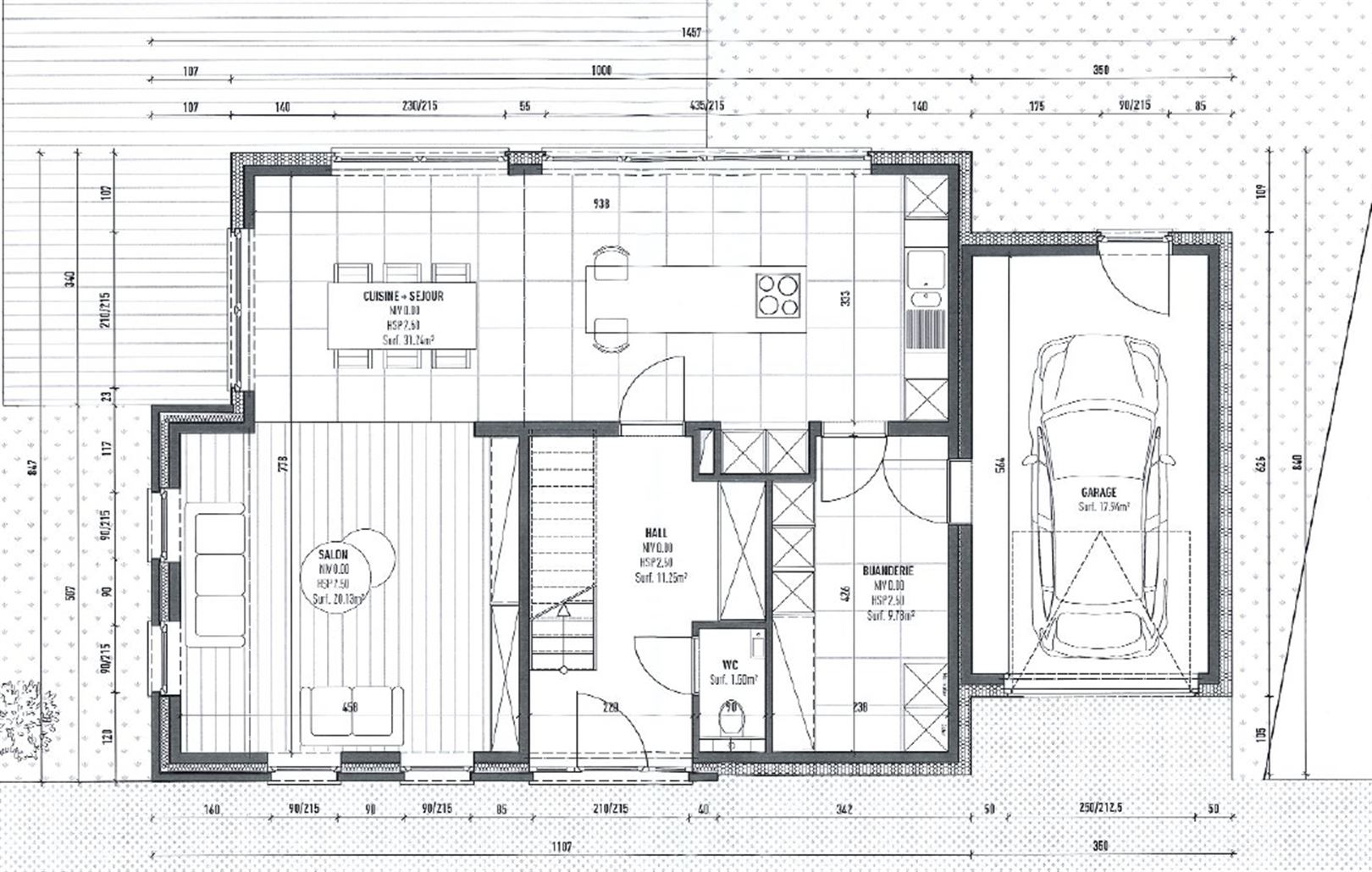 Une buanderie fonctionnelle ainsi qu’un garage complètent les espaces intérieurs.