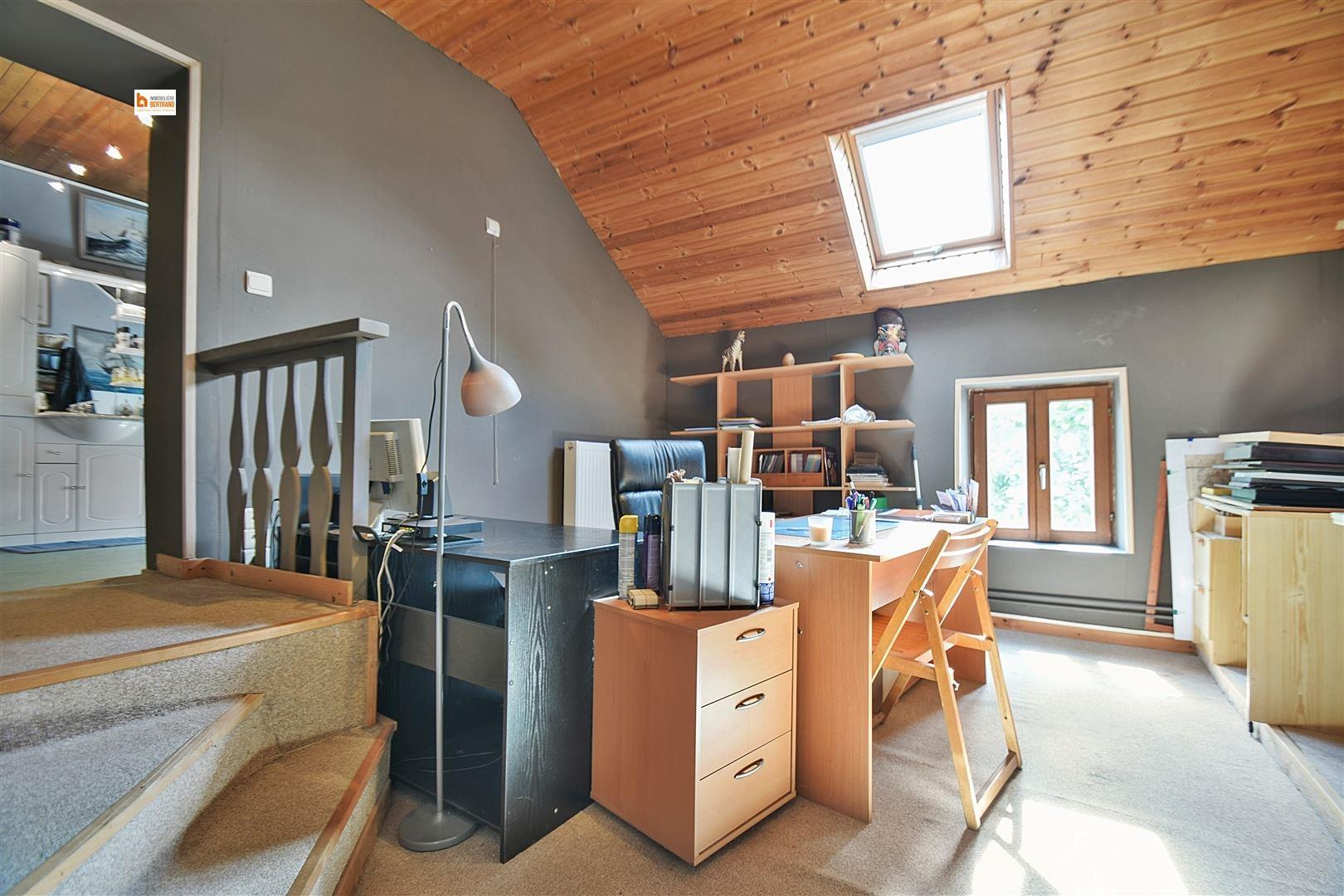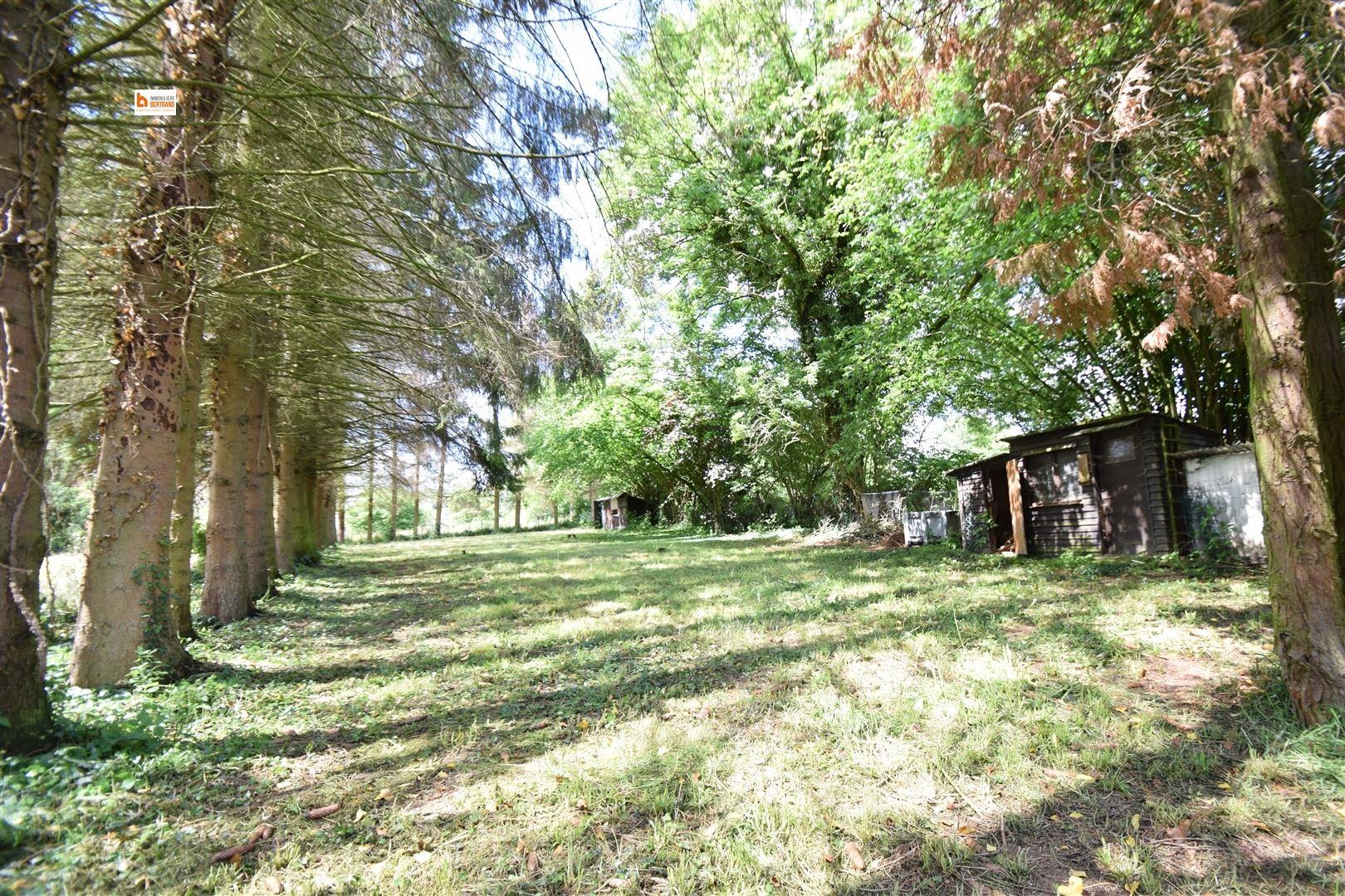 Rez-de-chaussée : Séjour avec cassette à bois ouvert sur la salle à manger, une cuisine semi-équipée, une salle de douche avec toilette et lavabo, un bureau, un espace rangement et un atelier de +/- 20 m². Elle comprend également un magnifique jardin.