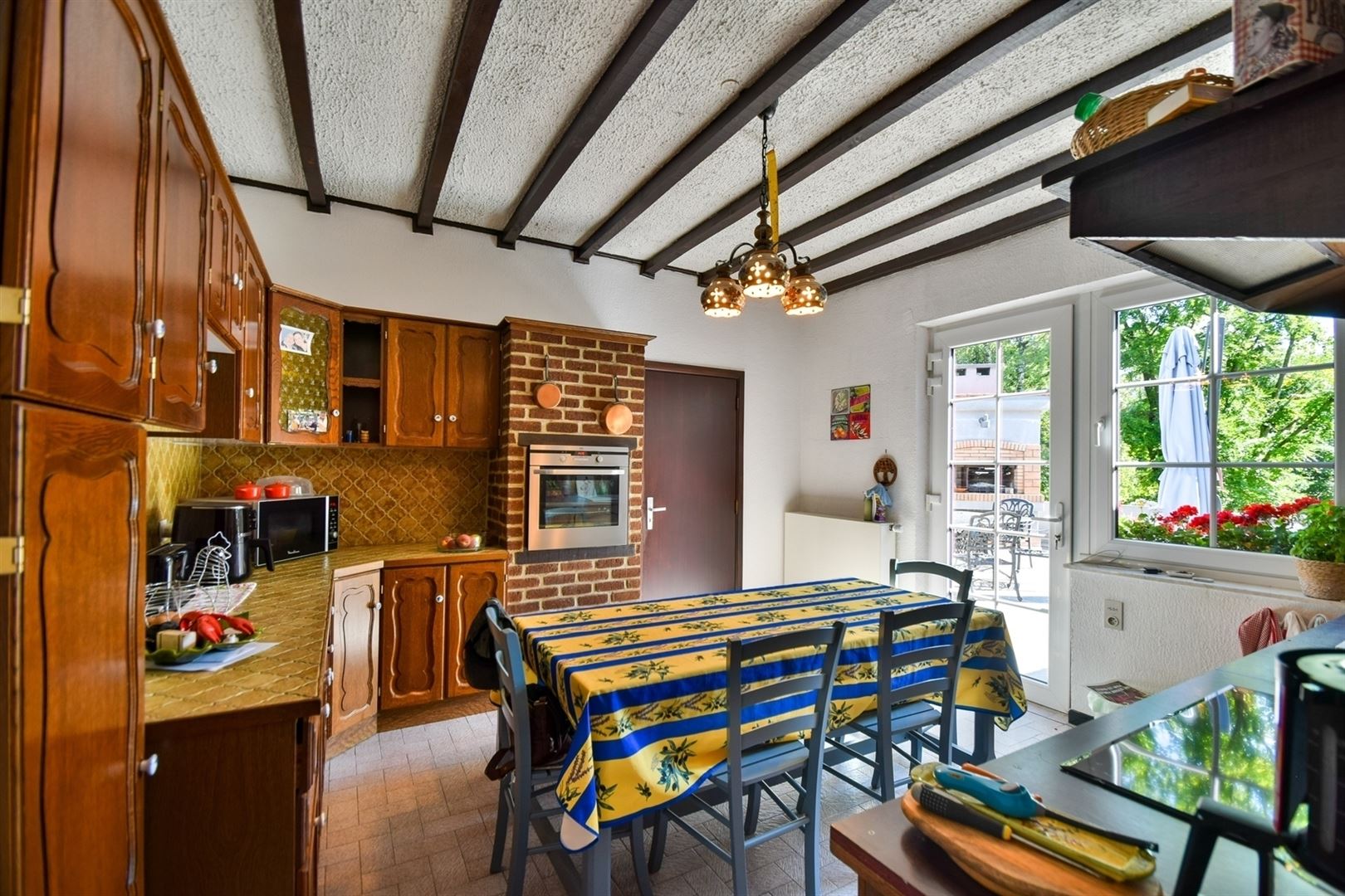 Magnifique maison, de plain-pied, idéalement située et proche de toutes les commodités, composée de : Au rez-de-chaussée : Hall d'entrée, salon avec cassette à bois, salle à manger, cuisine équipée avec accès à la terrasse, 3 chambres dont une équipée d'un système de climatisation, une salle de douche et 2 wc indépendants. Au sous-sol : buanderie, chaufferie et caves de rangement, cave à vin et garage deux voitures. Cette maison comprend également un espace extérieur avec deux terrasses dont une couverte avec barbecue intégré, jardin arboré idéalement orienté et sans vis-à-vis et plusieurs emplacements de voitures. Chauffage central mazout, 44 panneaux photovoltaïques, châssis double vitrage en PVC, citerne d'eau de pluie de 10.000L avec groupe hydrophore et système d'alarme. Cette maison vous séduira par sa situation et ses volumes. Faire offre à partir de 449.000,00 euros sous réserve de l'acceptation des propriétaires. Publicité non contractuelle. www.immo-bertrand.be