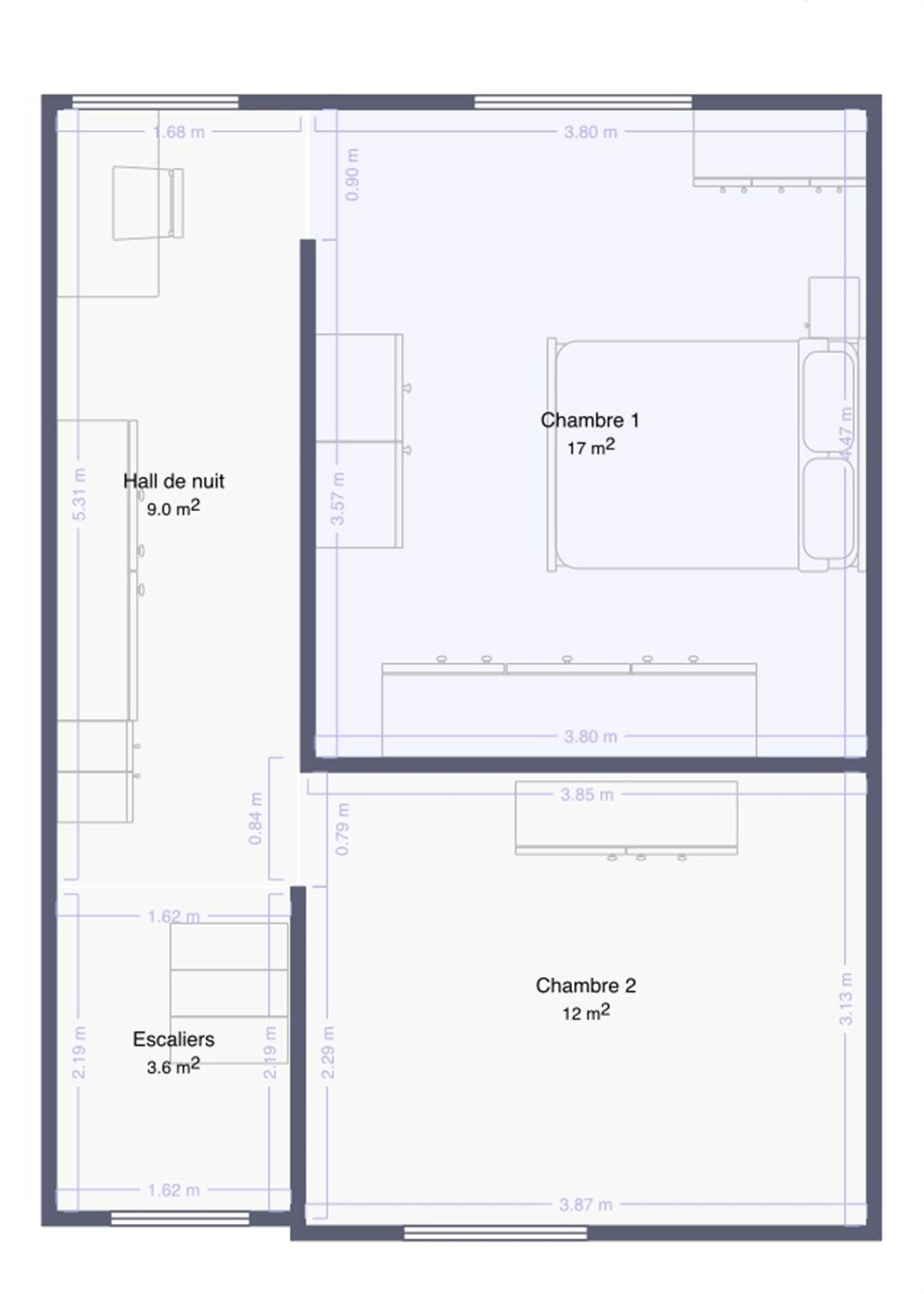 Au 1er étage : un hall de nuit et deux agréables chambres (17m² et 12m²).