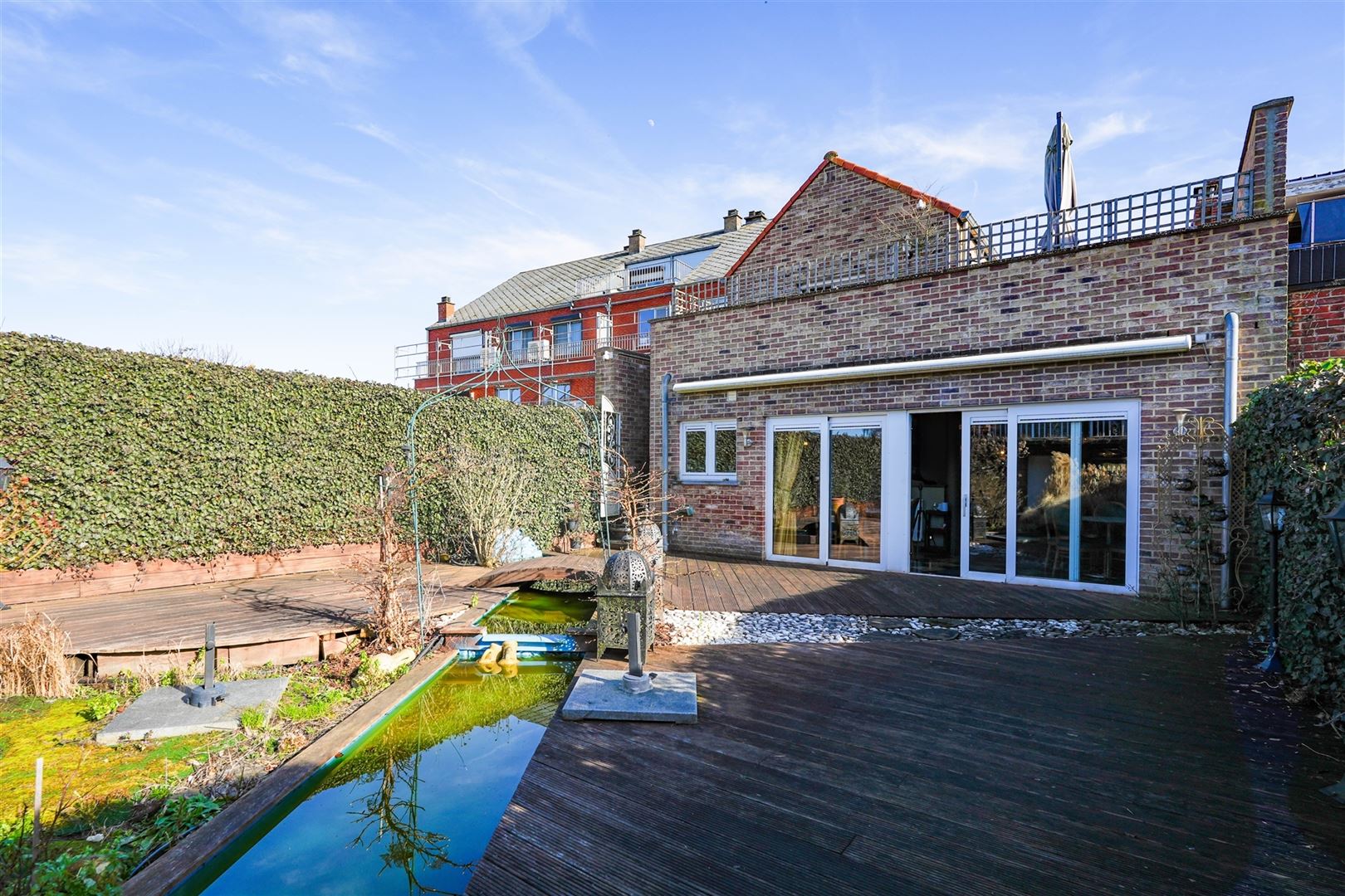 À l’extérieur: une terrasse avec point d’eau, idéale pour accueillir des tables ou créer un espace convivial.