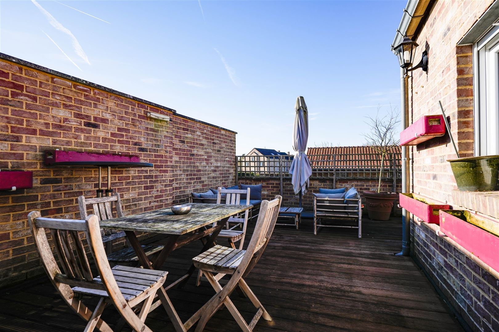 Le second appartement se compose d’un spacieux séjour de 44 m², d’une salle de douche, d’une chambre d’environ 16 m², d’une arrière-cuisine/buanderie et d'une grande terrasse privative.