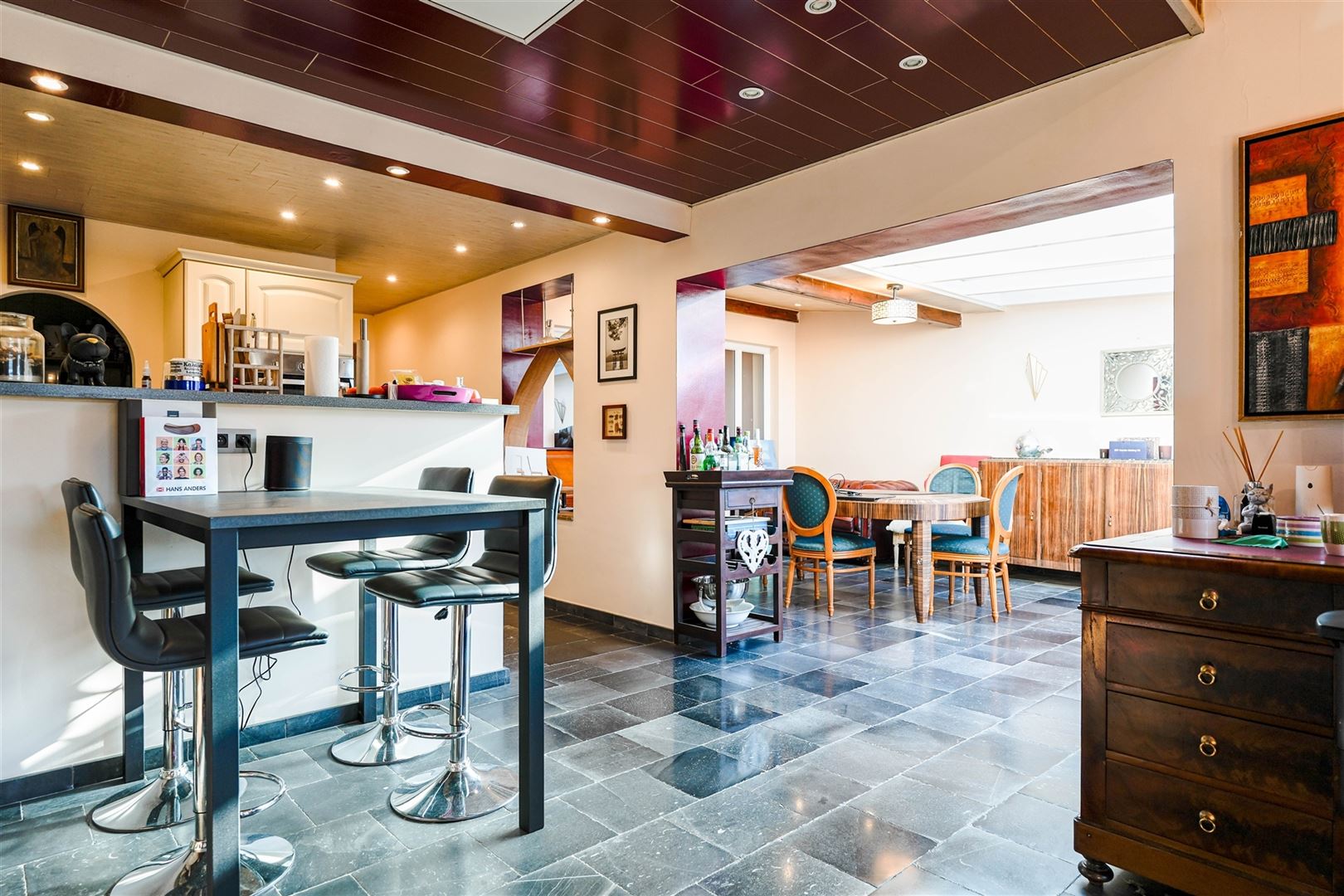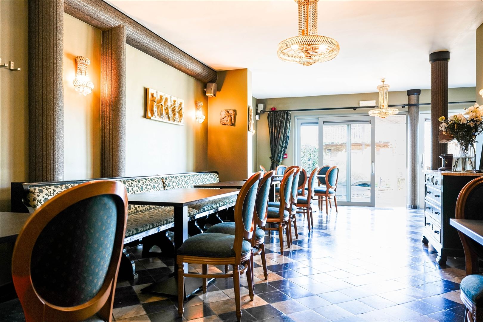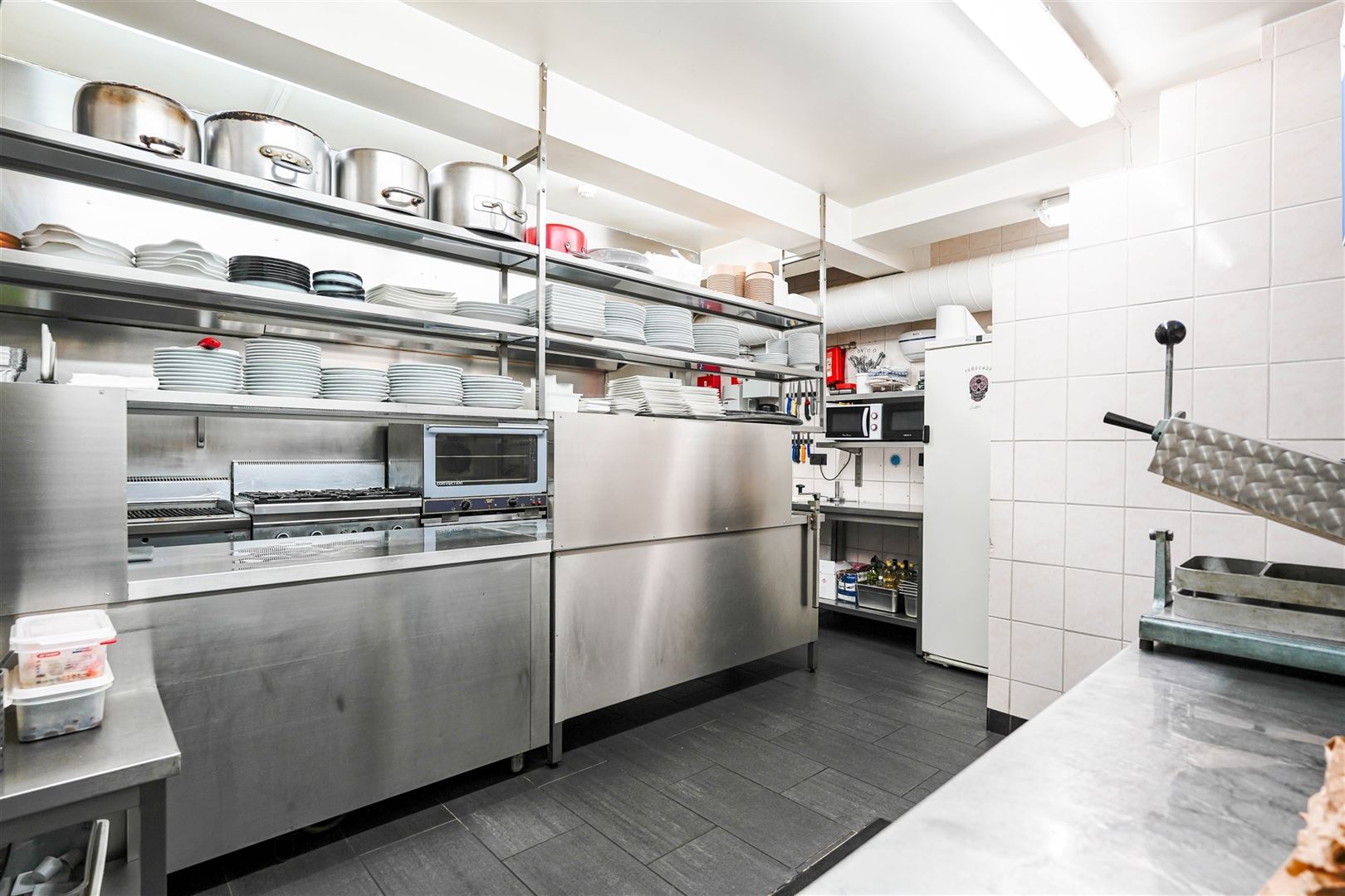 Le rez-de-chaussée commercial comprend une vaste salle, une cuisine professionnelle entièrement équipée, des sanitaires adaptés à la clientèle, ainsi qu’un espace extérieur offrant la possibilité d’aménager une agréable terrasse.